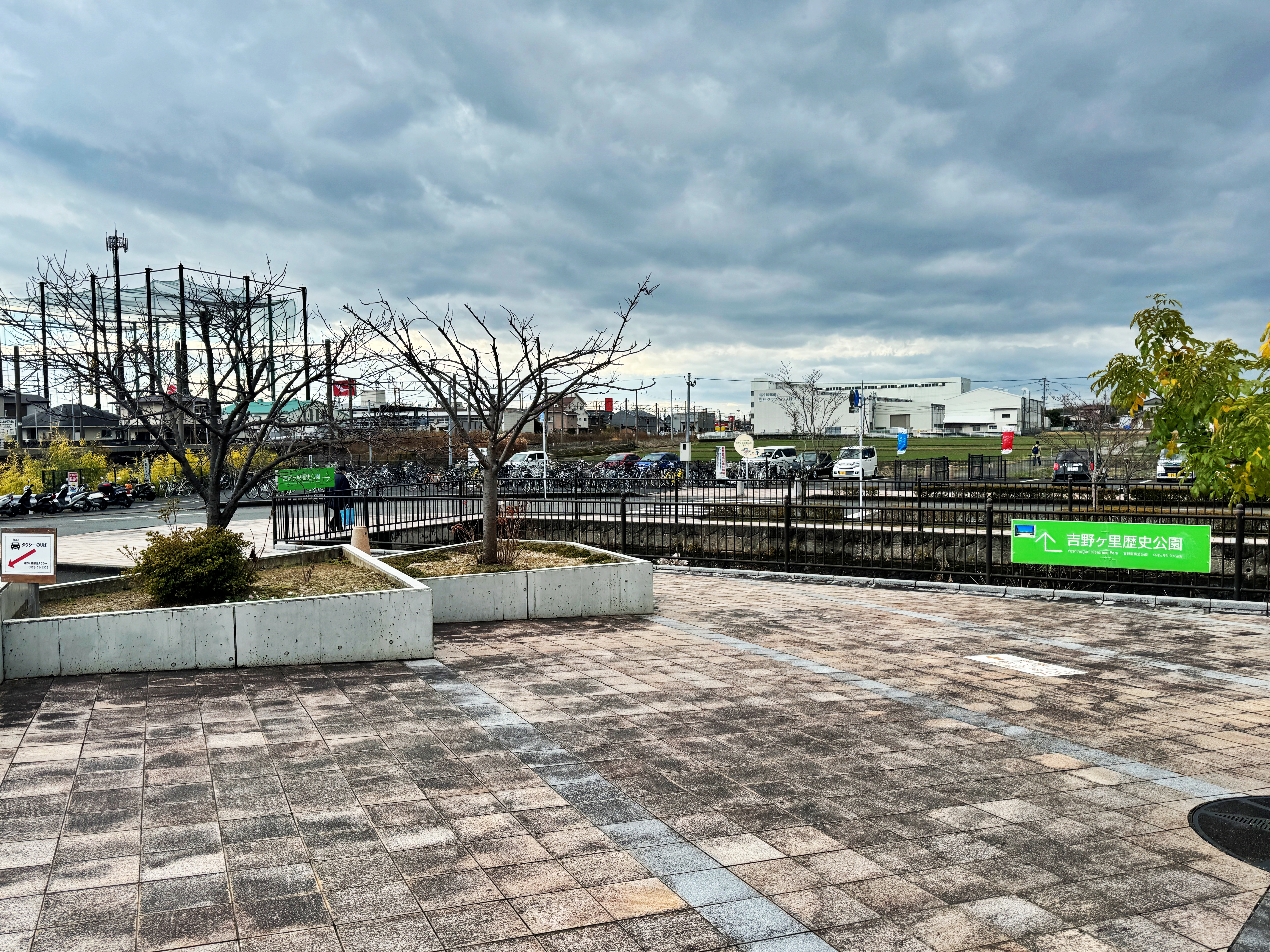 선사시대 유적이 발굴된 요시노가리 역사공원은 역에서 720m 떨어져 있습니다.