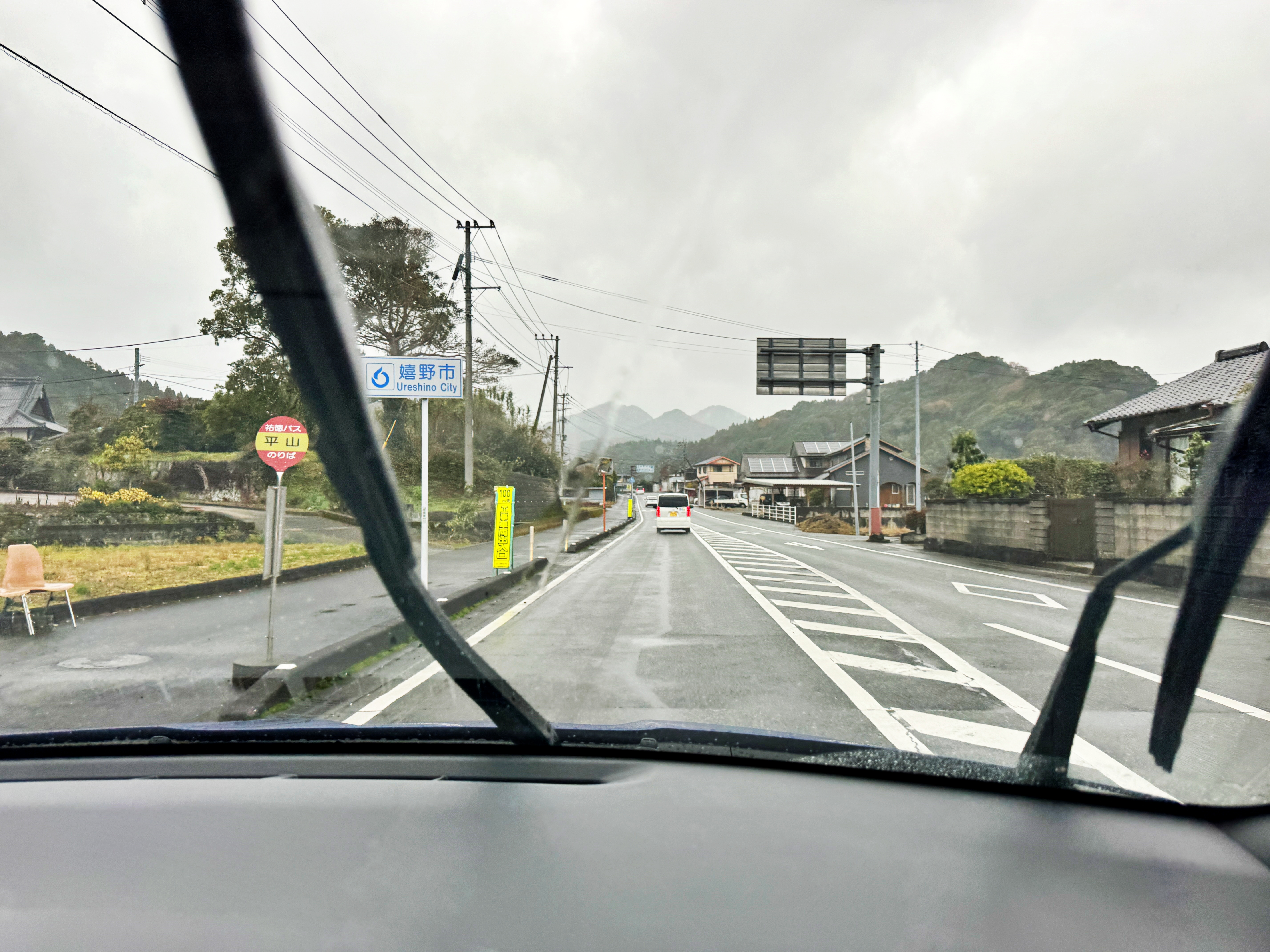 비가 살짝 내리고 있습니다. 그렇게 우레시노시에 진입합니다.