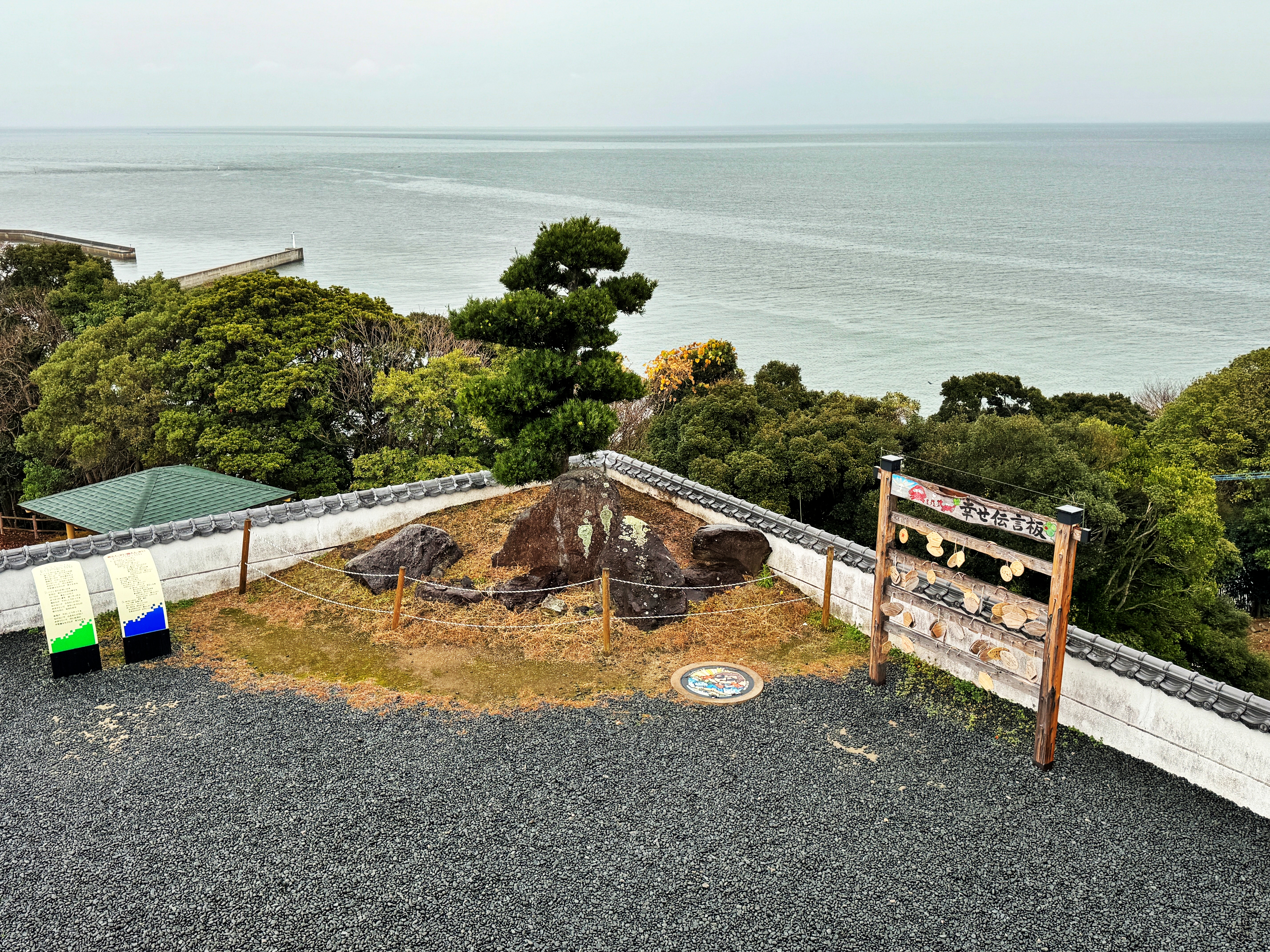일본의 남북조 시대에 이 자리에 성이 존재했었다고 합니다. 다케자키섬의 지형을 이용해 요새처럼 산성과 수성의 기능을 겸비했던 성이라고 하는데, 오래전에 철거되었고 90년대 들어 성터 자리에 전망대를 지어놓았다고 합니다. 날이 좋으면 저 멀리 아소산까지도 보인다고 하는데 날이 좋지 않아 아쉬웠네요.