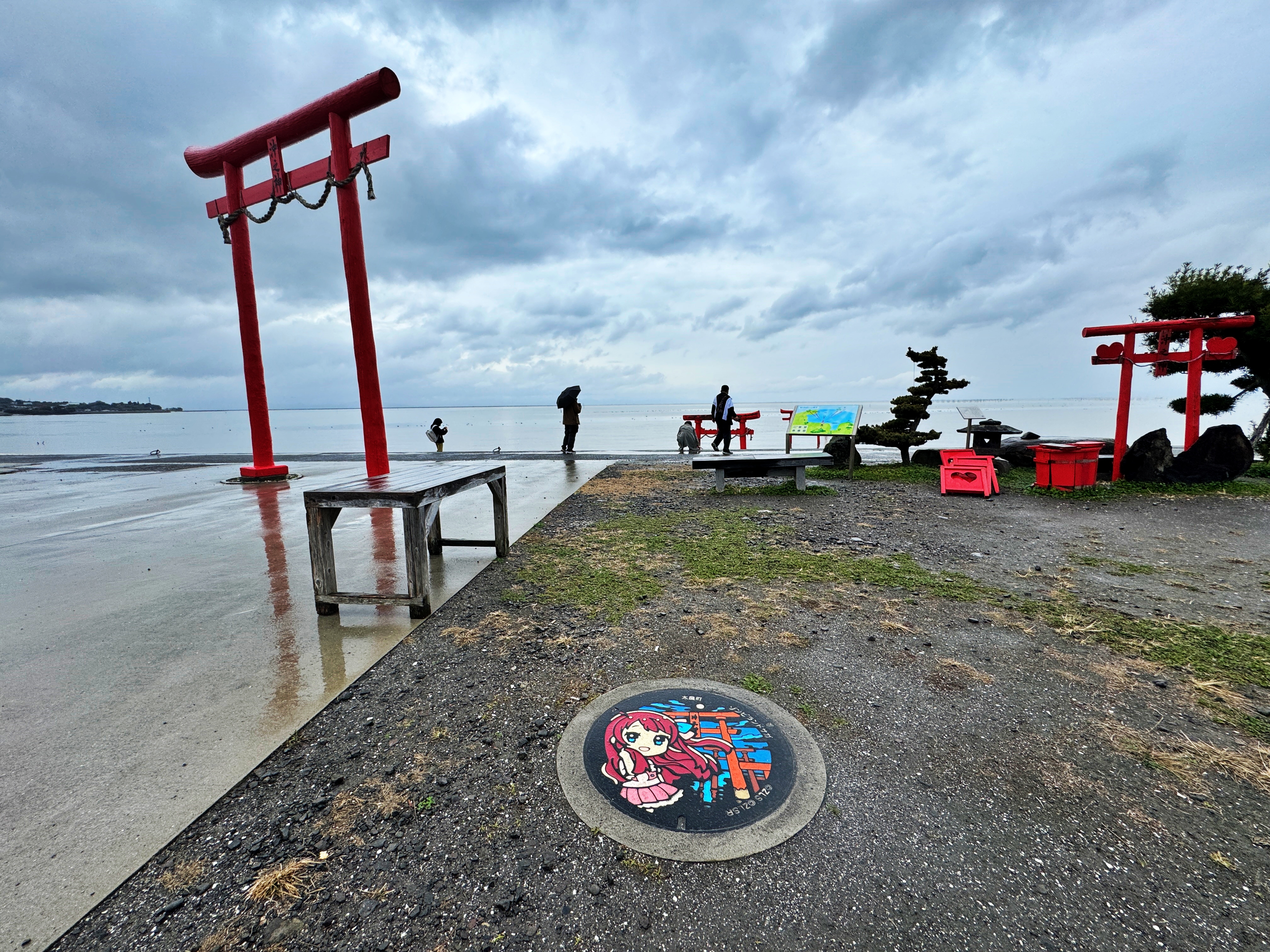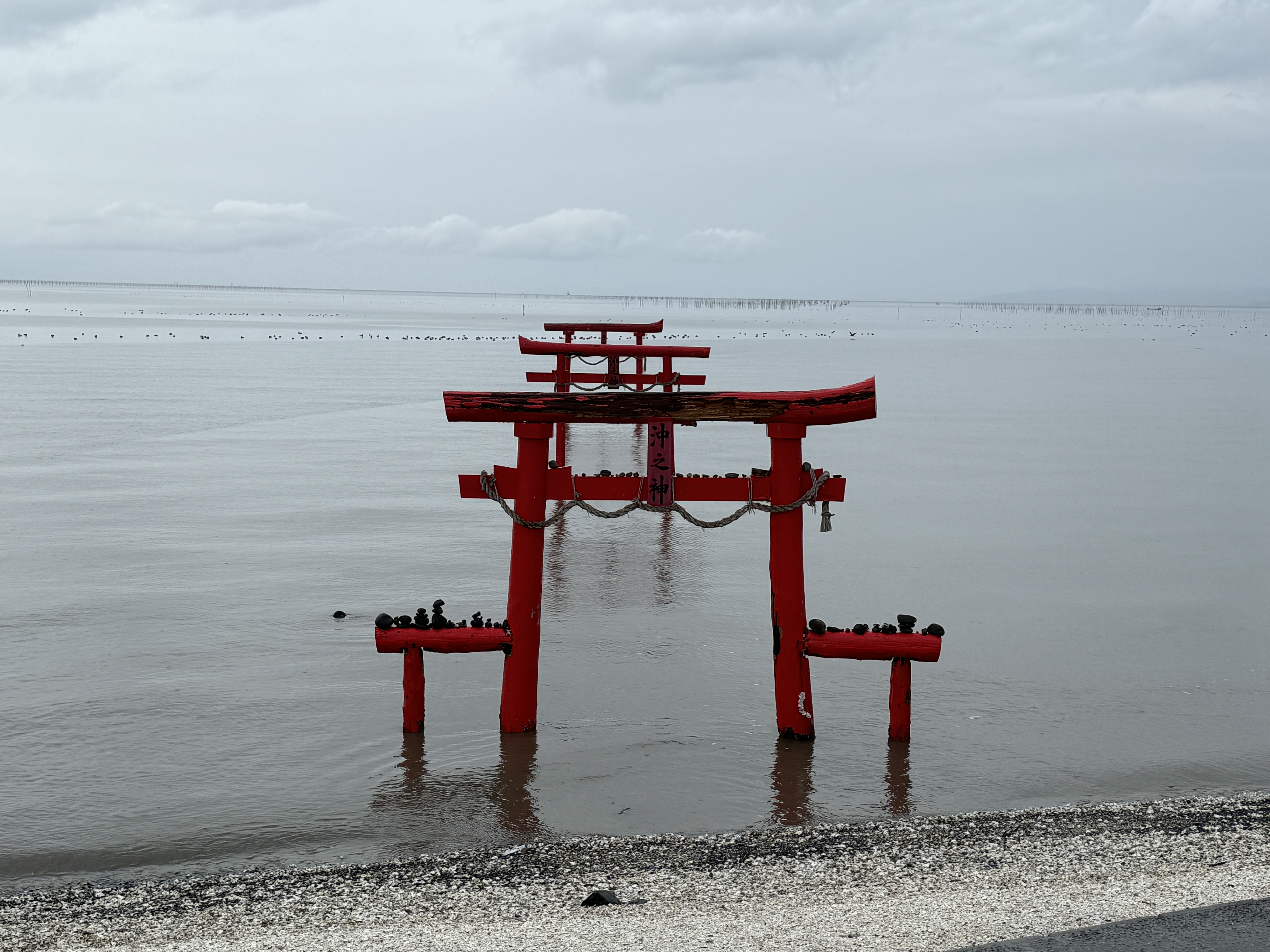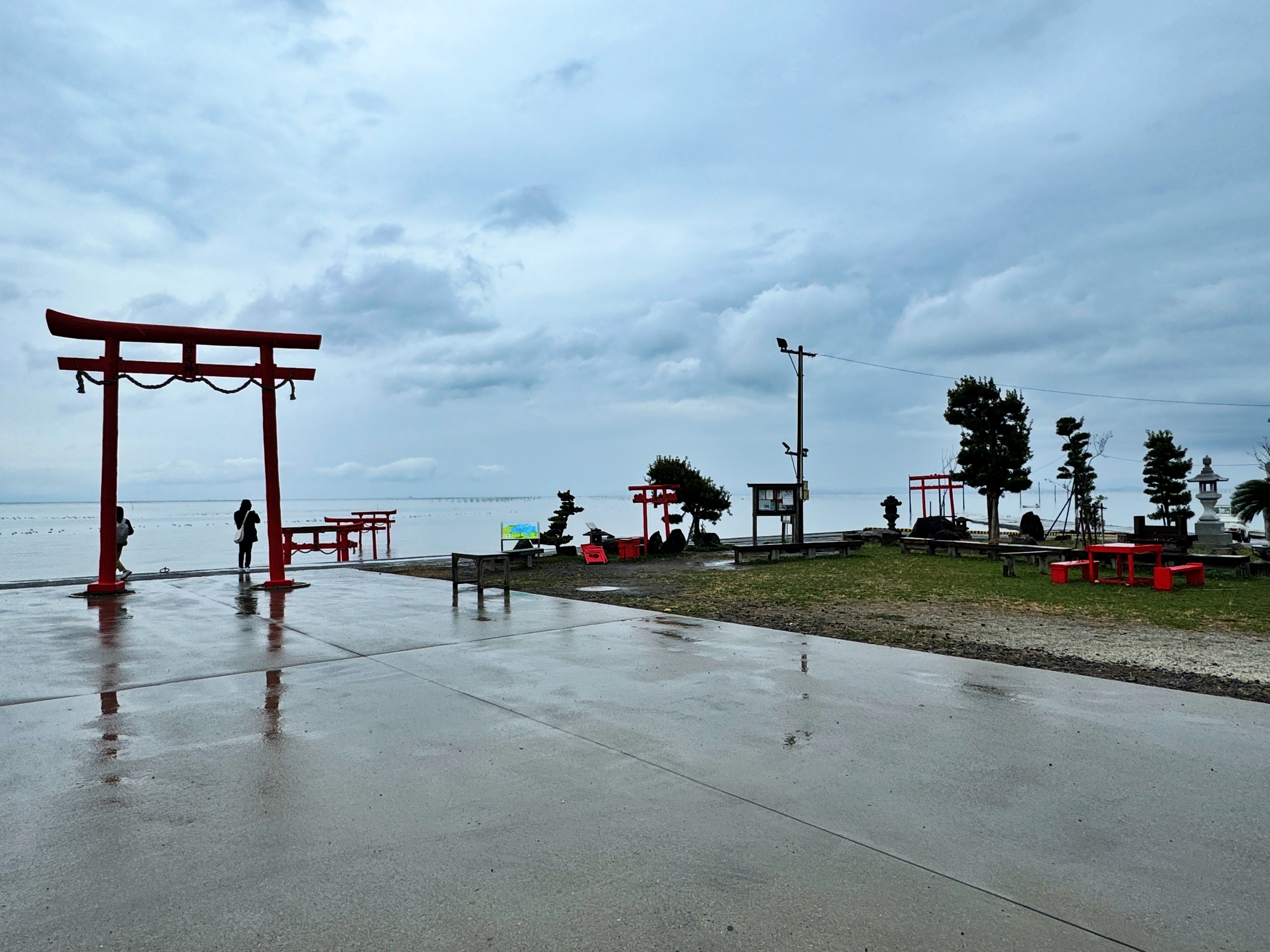 다음 목적지는 신사입니다. 오우오 신사(大魚神社)라는 이름의 바닷가에 있는 작은 신사인데 신사의 문인 도리이가 바다 한복판에 자리잡고 있어 이걸 보고 가이추 도리이(海中鳥居)라고 부르는데, 이 작은 신사와 바다 한복판의 도리이가 타라초를 대표하는 관광지이기도 합니다.