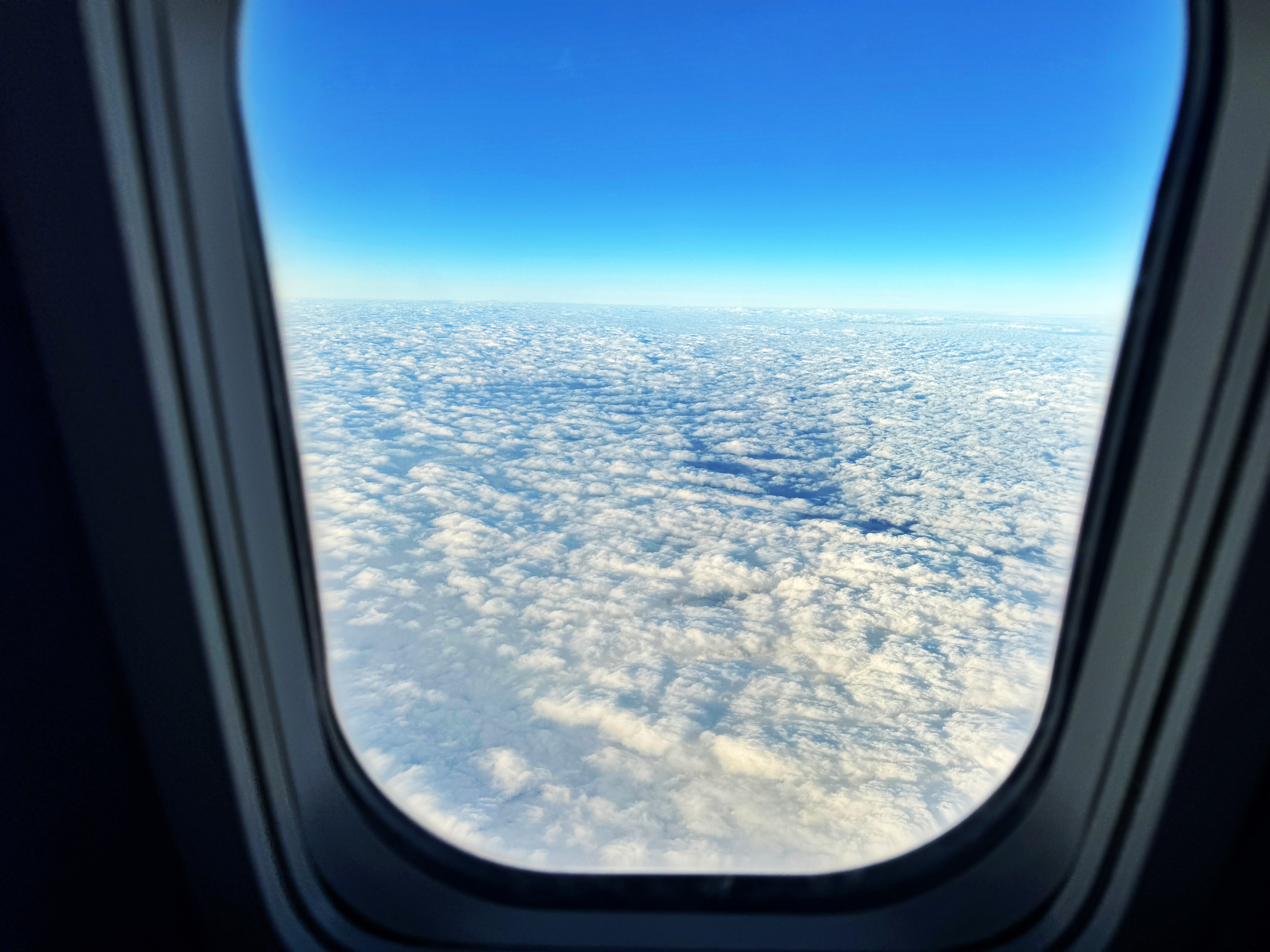 곧 비행기가 이륙합니다. 하늘은 뿌연 구름뿐이네요.