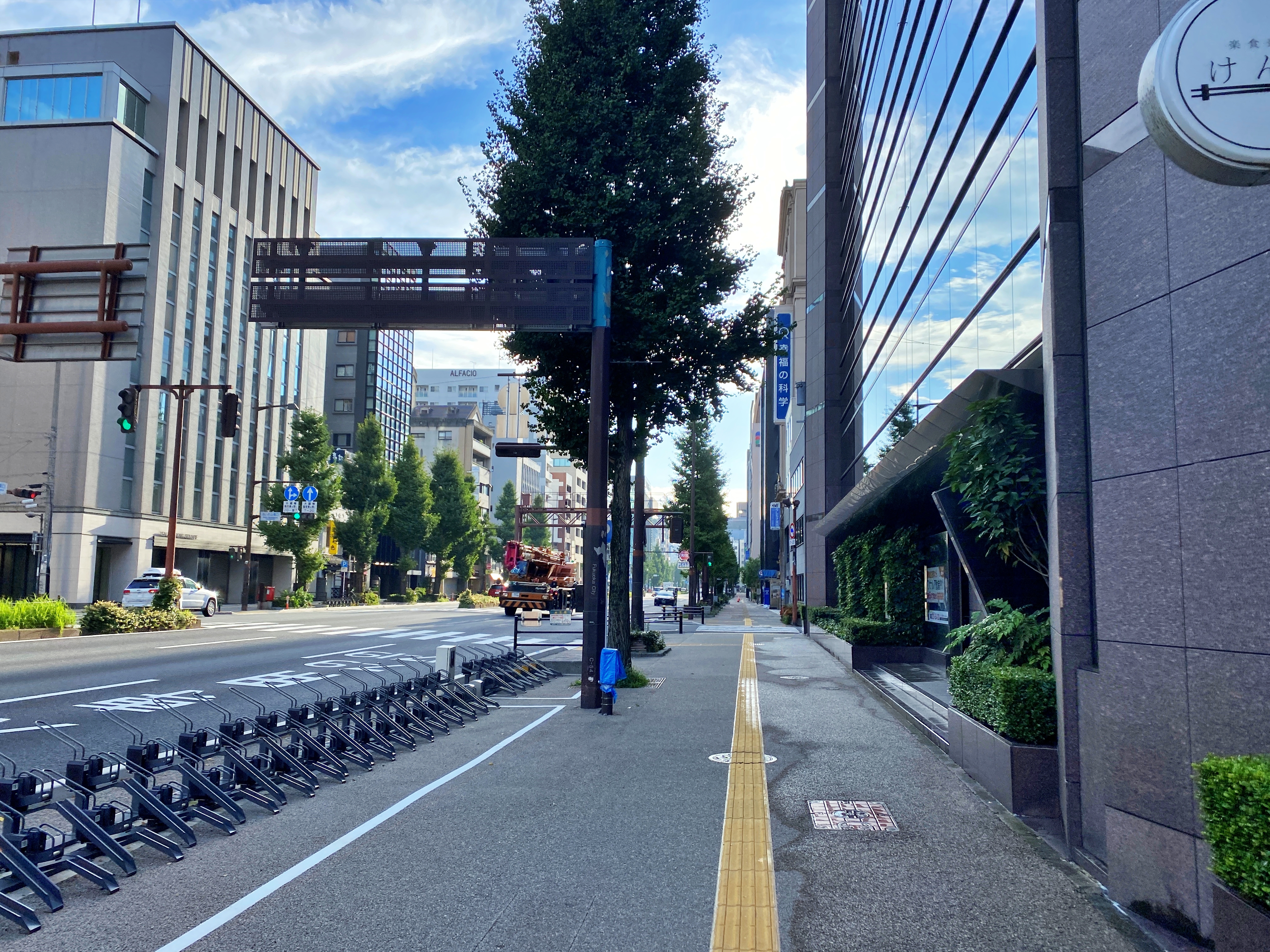 가볍게 입은 근처 주민들만 좀 보이지 항상 붐비는 텐진의 모습은 온데간데없이 사라졌습니다. 평일 아침이라면 간간히 출근하는 사람들의 모습이라도 보입니다만, 연휴의 시작을 알리는 토요일이라 그런 사람들도 별로 보이지 않는군요.