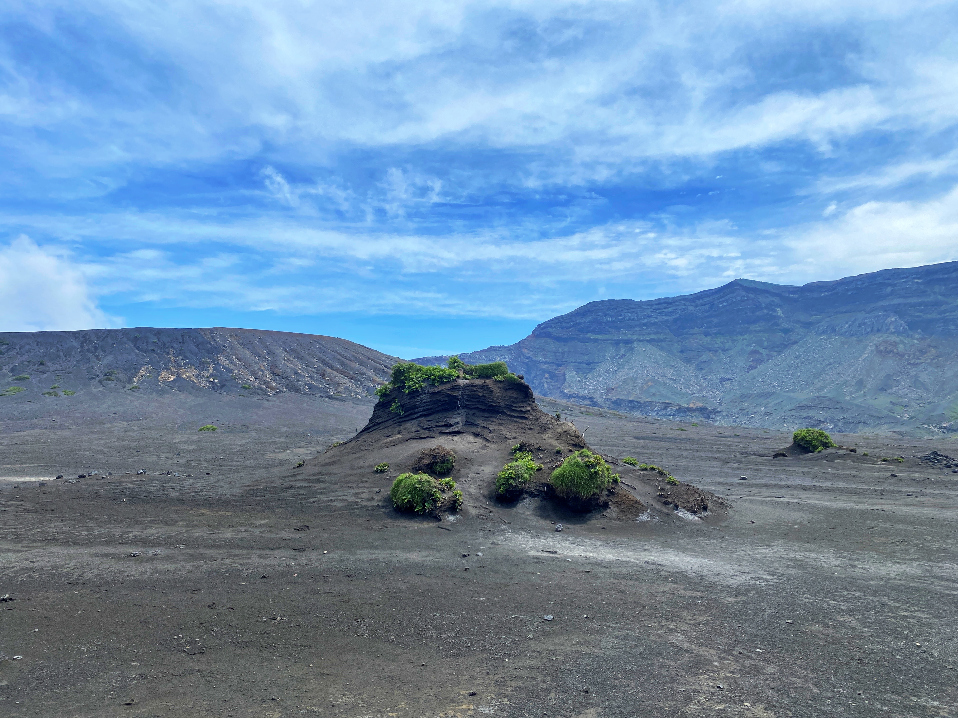 용암이 흘러내렸을 자리에 생겨난 작은 섬. 그 위로 작은 풀들이 자라고 있었습니다.