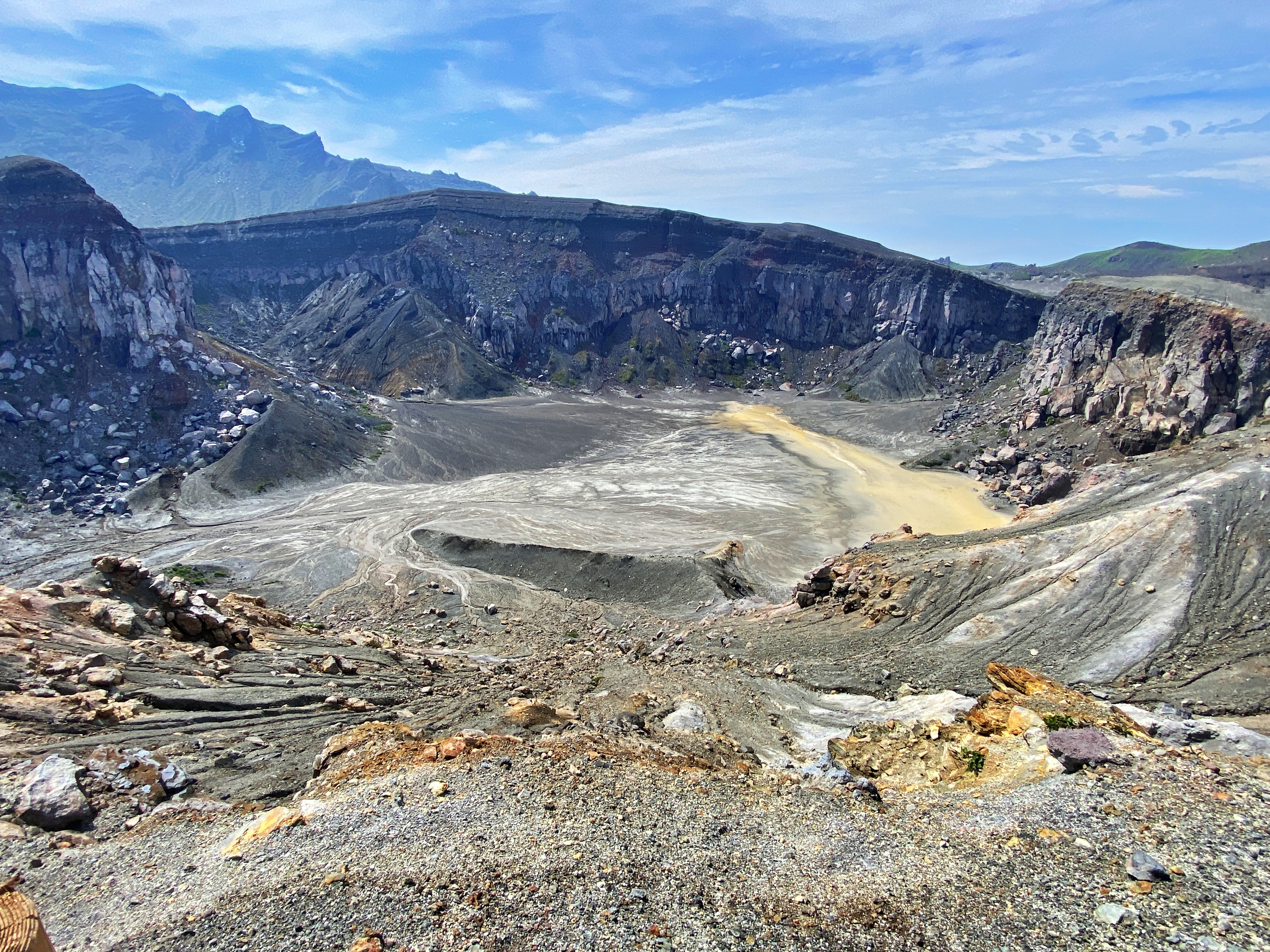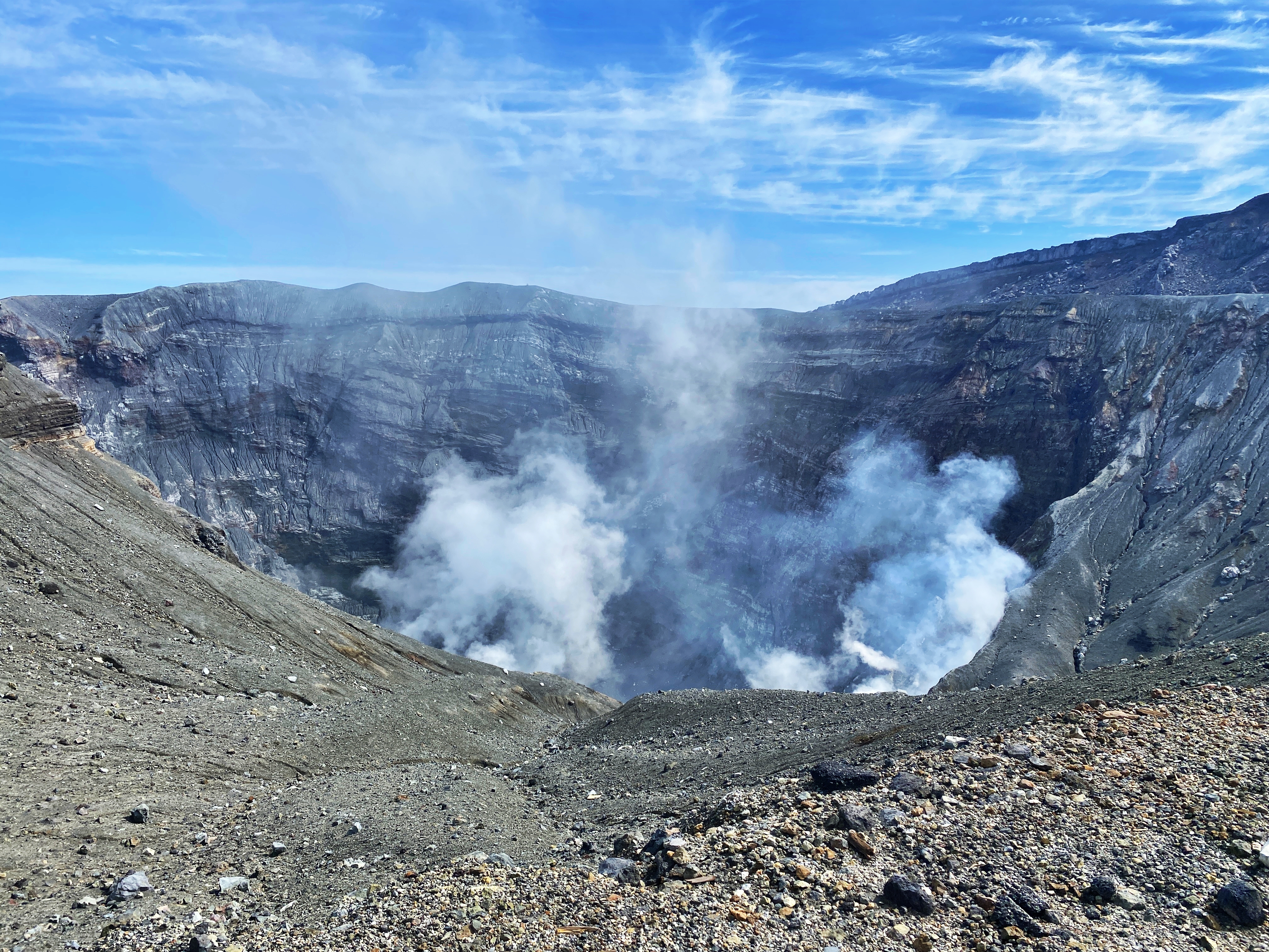 해발 1,506m의 나카다케 분화구를 향해 달려왔습니다. 우리나라로 따지자면 오대산 정도 높이에 있는 활화산입니다. 물론 1번부터 7번 분화구까지 존재합니다만, 현재 활동 중인 화산은 아소산에선 이 나카다케 분화구가 유일합니다. 물론 일본 전역을 놓고 본다면 이렇게 현재도 화산활동이 진행 중인 활화산은 여럿 있다고 합니다.