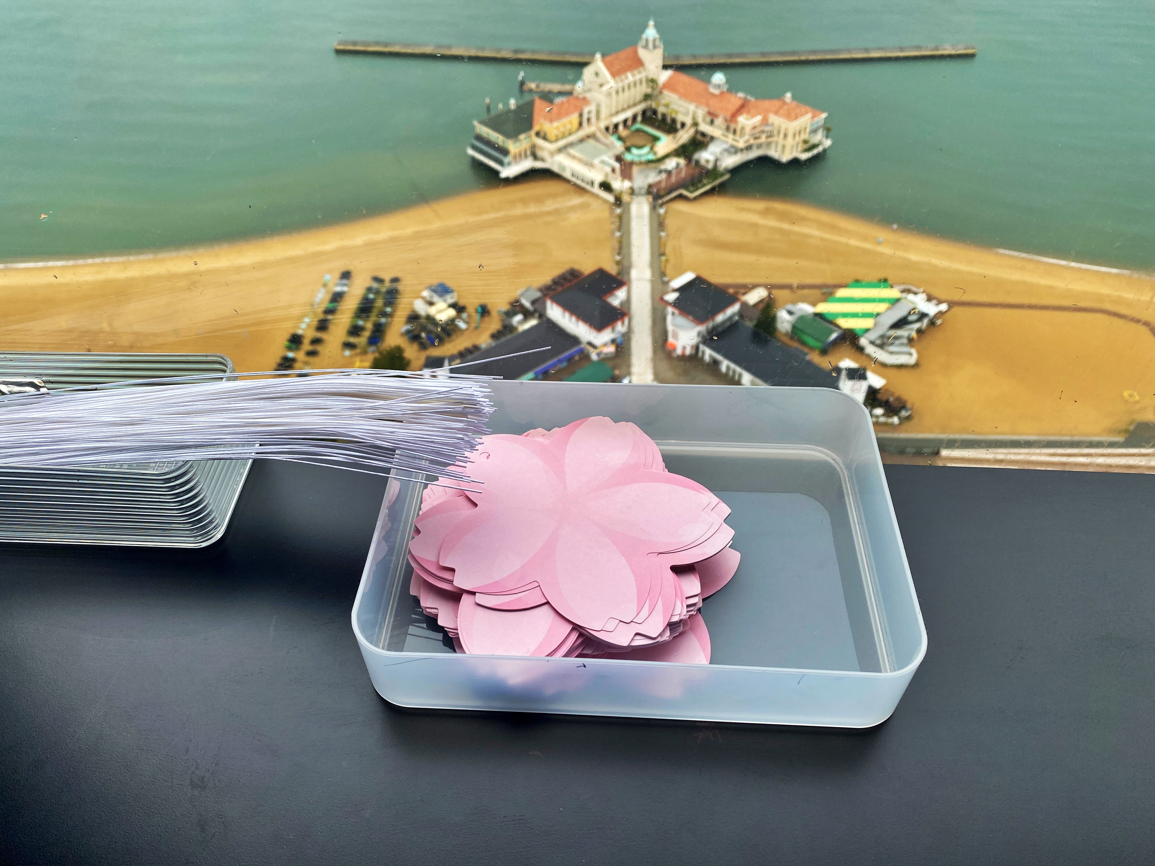 벚꽃잎 문양의 종이를 걸어두었네요.