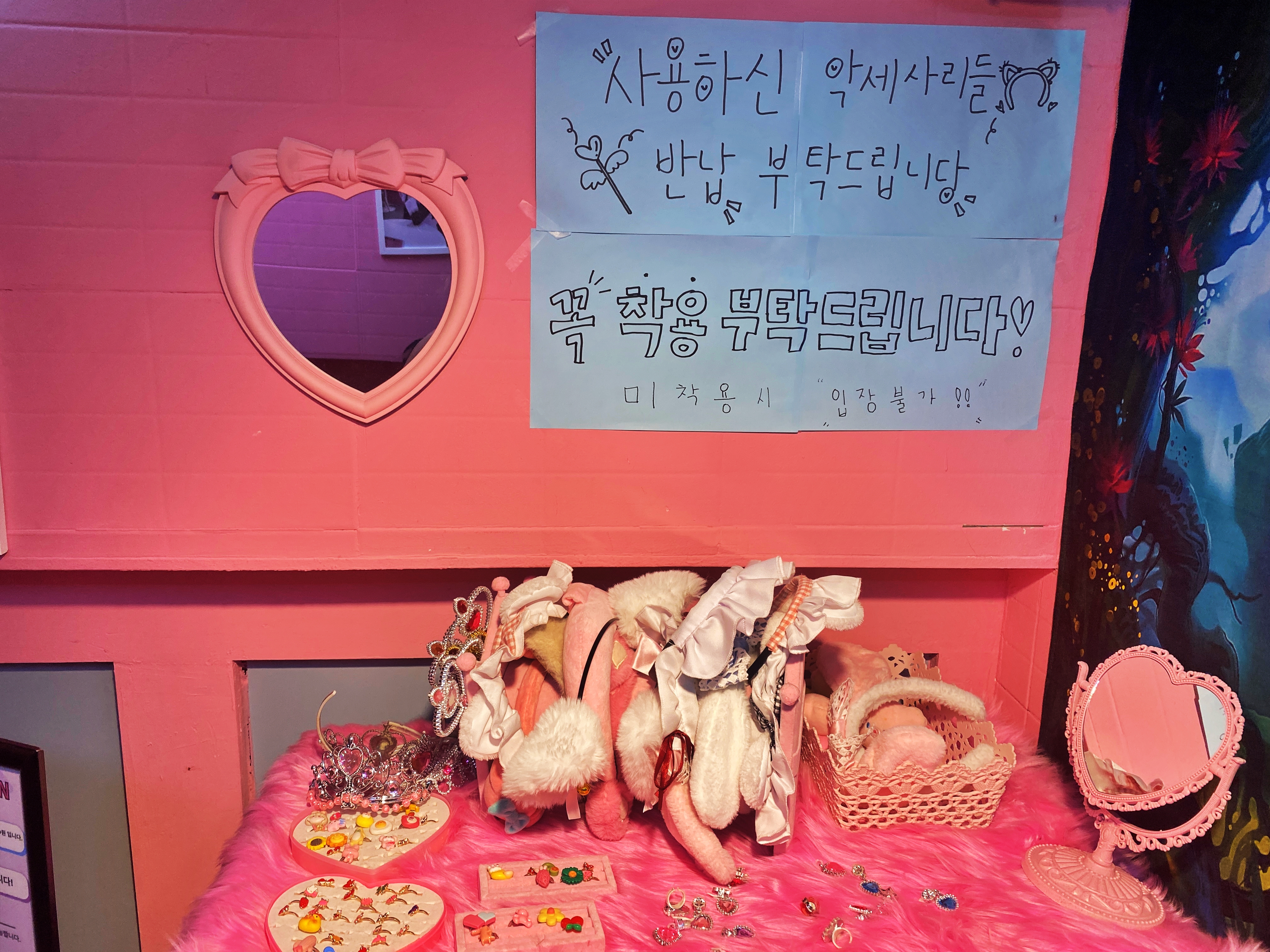 메이드카페 한편에는 이런 다양한 게임들과 선물로 주는 사탕 복장등이 있습니다.