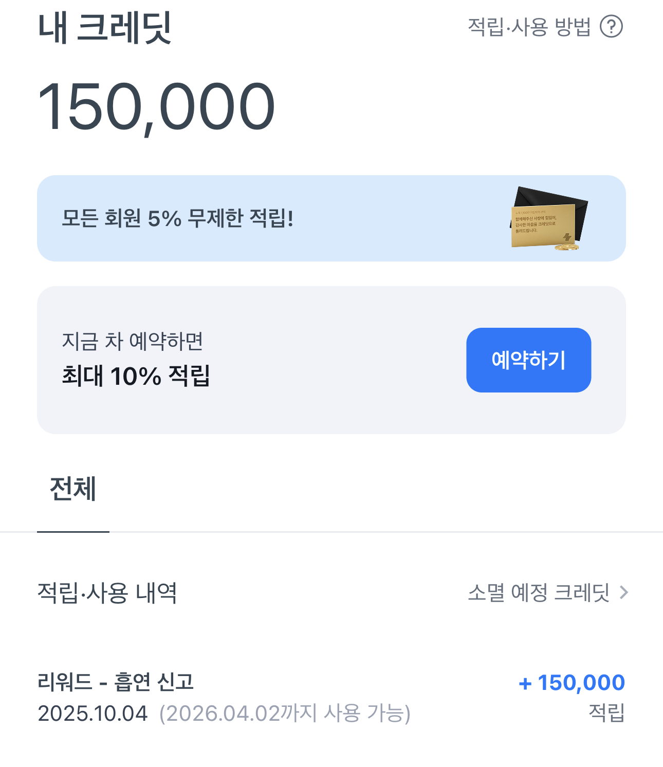 | 쏘카 흡연 신고하기 (리워드150,000 크레딧) (0) | 2025.10.24 |