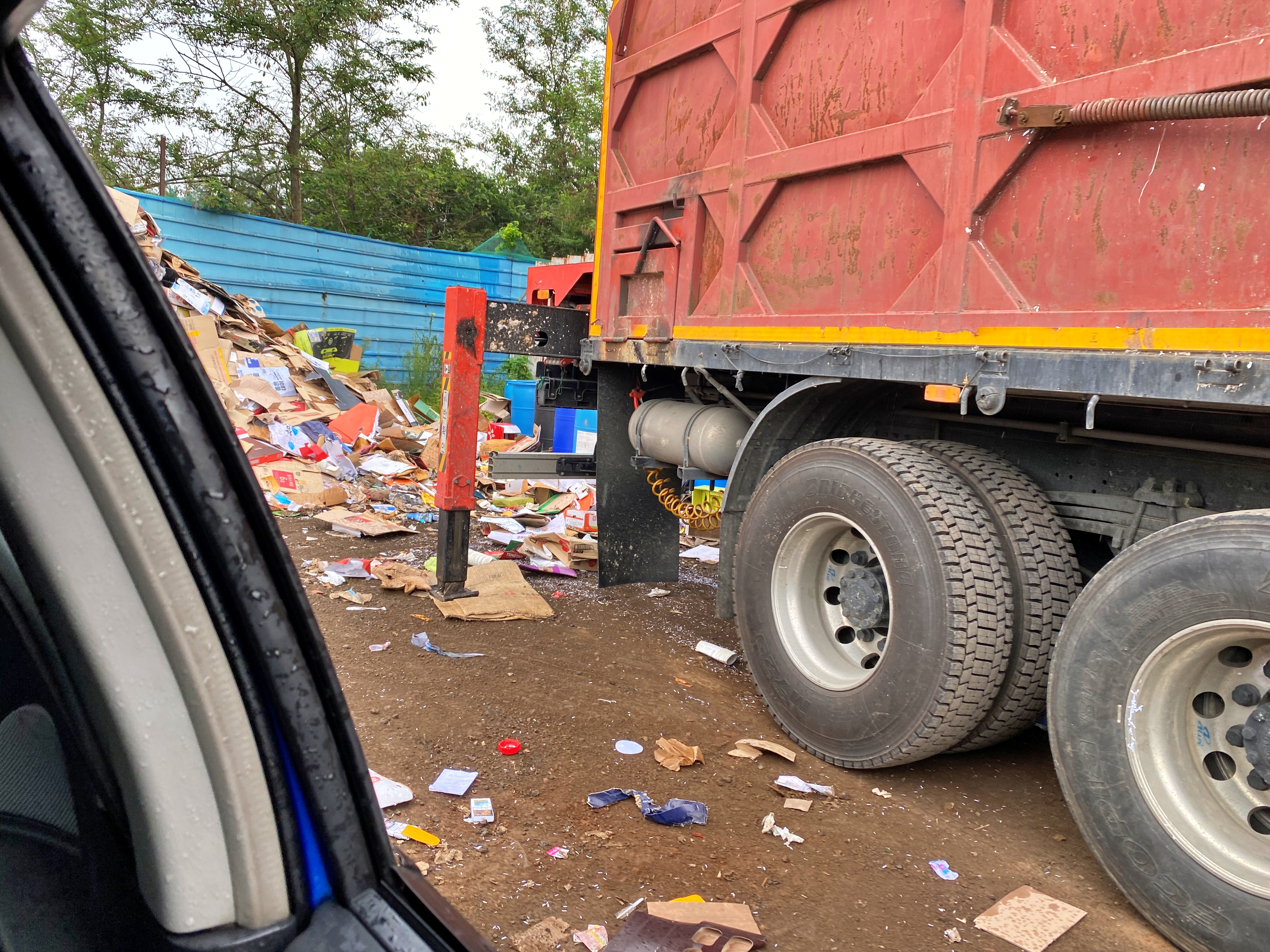 대략 1.2톤. 맨날 38톤 39톤만 보다가 1톤 겨우 넘는 중량을 보니 새롭네요. 계근을 한 뒤 파지를 쌓아두는 야적장으로 차를 가져가서 트렁크를 열고 파지를 방출해냅니다.