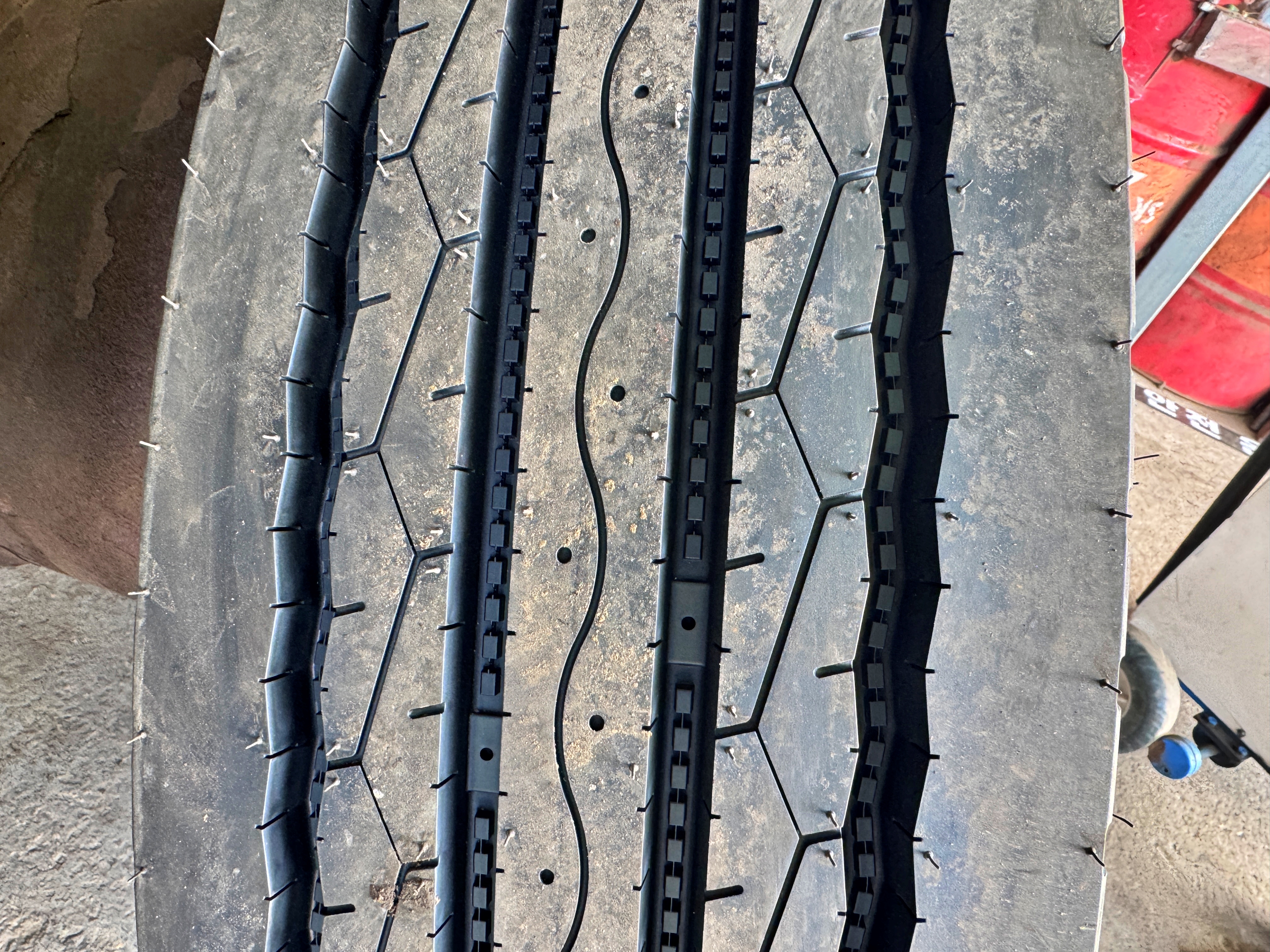 재작년 10월에 포항에서 교체하고 왔던 중국산 타이어. 4축에서만 1년 6개월을 별문제 없이 버텼습니다. 4축에 신품 타이어를 끼운다면 1년 6개월 정도 버틴다는 이야기겠죠.