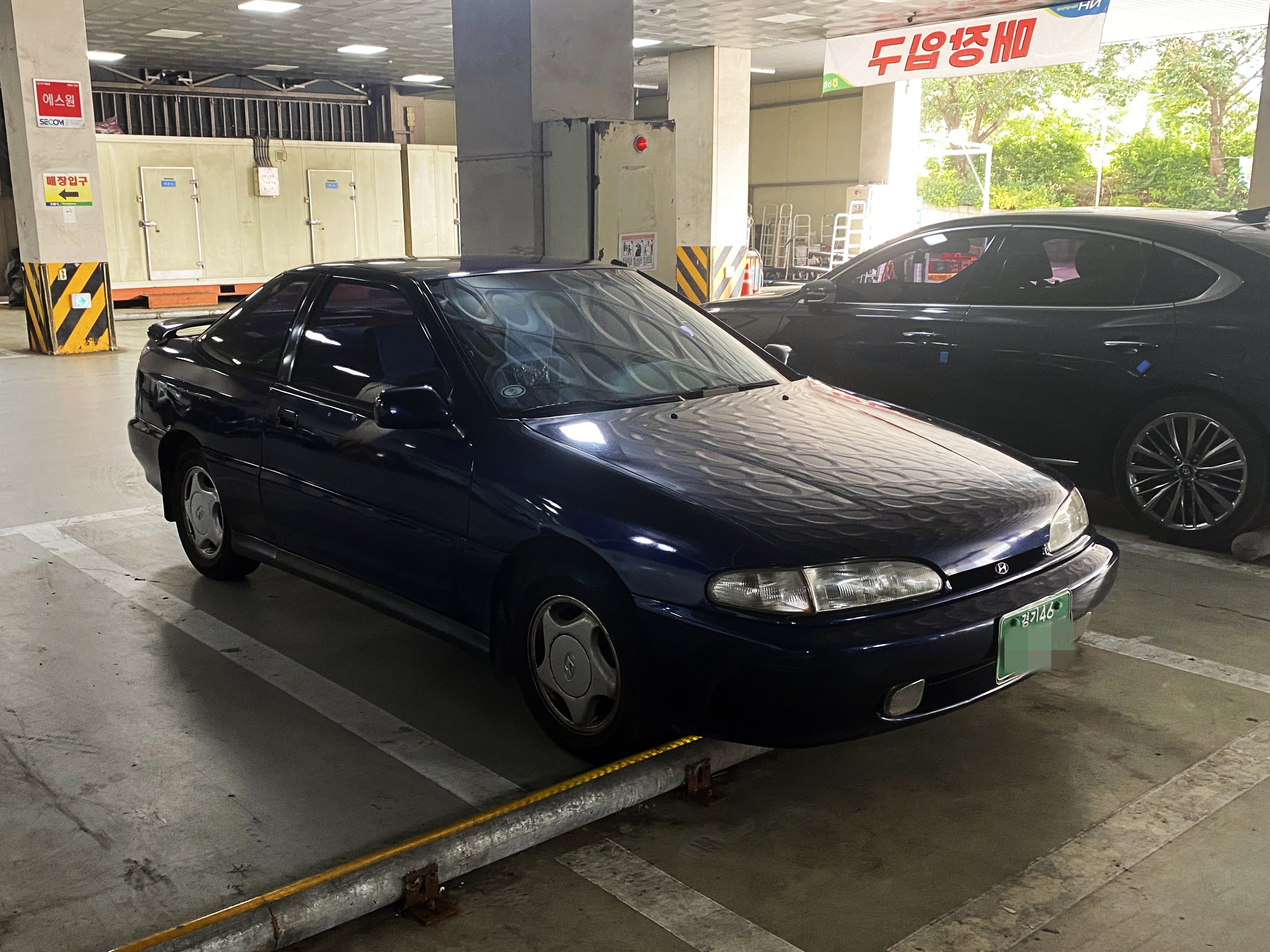 오늘의 올드카 목격담은 서산의 한 마트에서 목격했던 94년 12월에 최초등록된 현대자동차의 스포츠 룩킹 카(SLC) 스쿠프입니다. 현대자동차가 처음 양산한 쿠페형 차량으로 당시 절찬리에 판매되던 엑셀의 차대를 기반으로 90년부터 96년 티뷰론의 등장 이전까지 약 6년간 판매되었습니다.