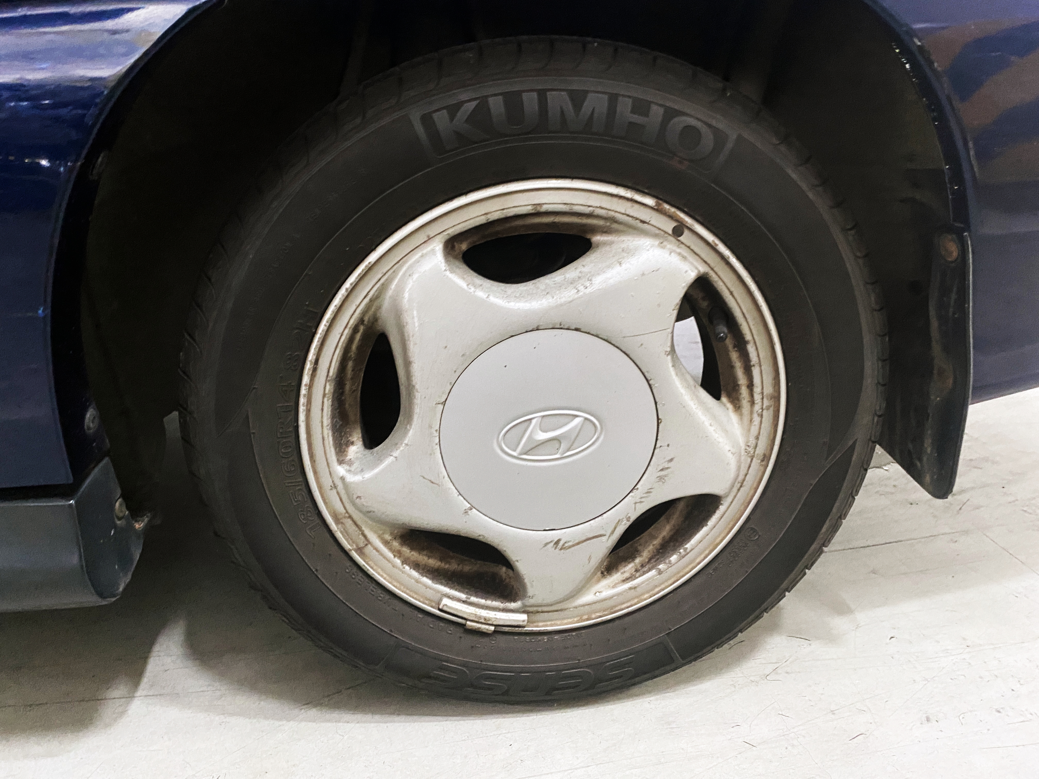 스쿠프의 순정휠은 그나마 차가 보이던 시절에도 쉽사리 볼 수 없었는데 순정휠까지도 잘 보존되어 있습니다. 지금은 경차에나 들어가는 14인치 휠입니다만, 당시만 하더라도 중형차에도 적용되던 나름 고급사양이곤 했습니다. 휠캡은 쏘2 엘란트라등과 함께 공유하는 듯 보이네요.