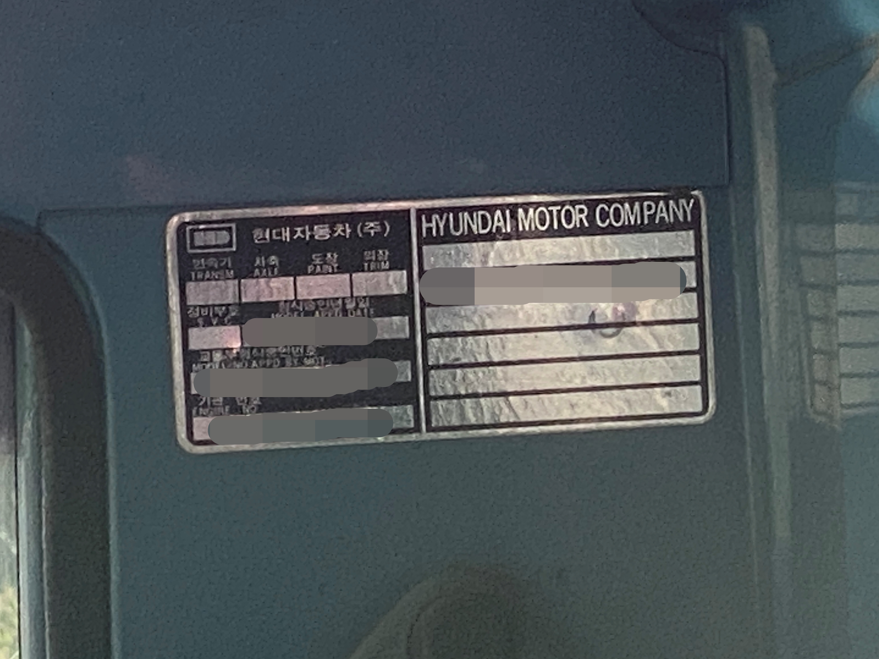 옛 HD 로고와 함께 차량 정보와 차대번호가 작성된 패찰도 보입니다.