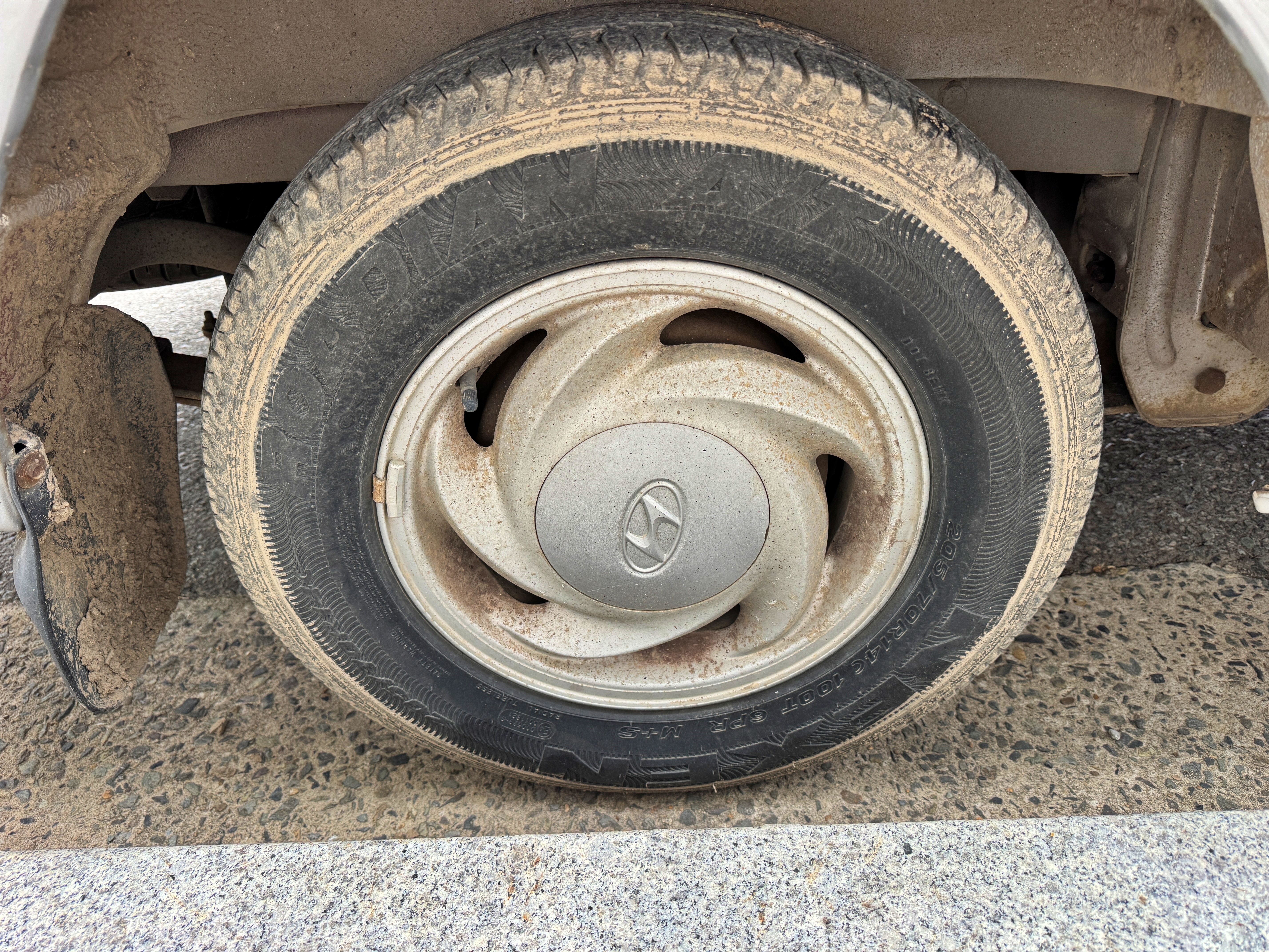 타이어는 금호타이어의 솔루스 4VAN KL15. 역시 은색 락카로 휠을 덧칠했던 흔적이 타이어에도 남아있습니다. 최소 20년은 묵은 타이어겠지요.