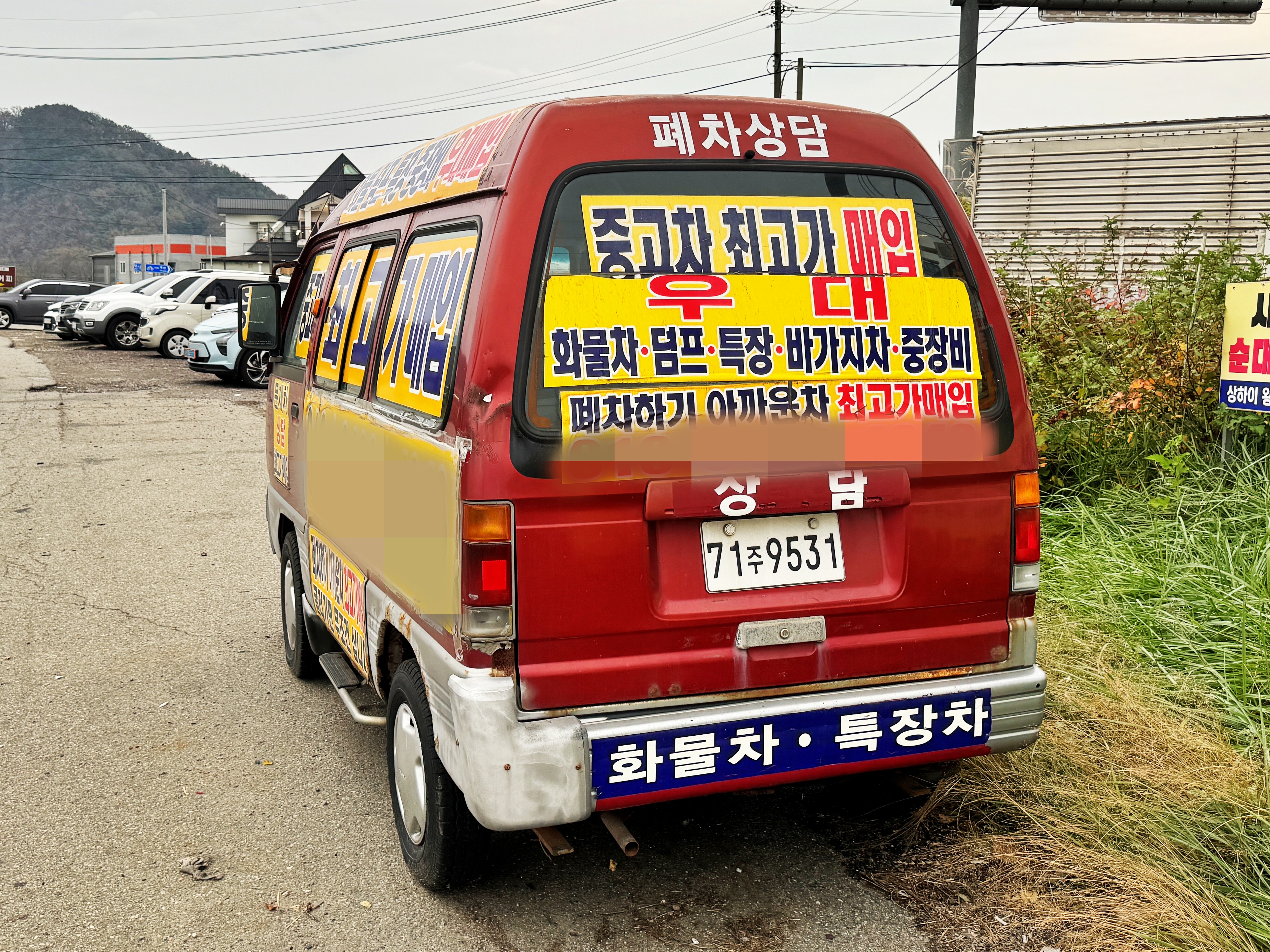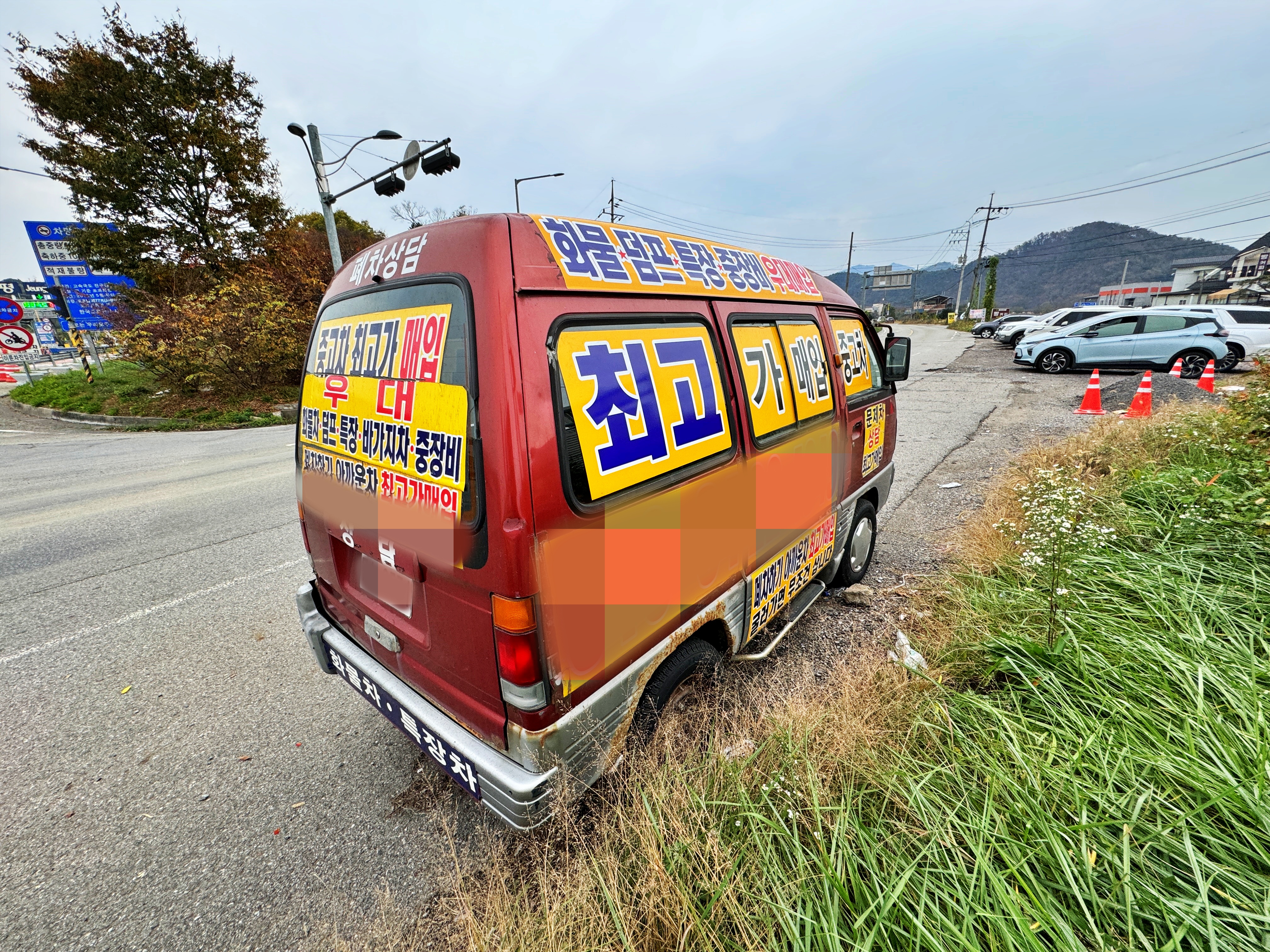 이전에도 올드카 목격담에서 많이 다뤘던 차량이죠. 스즈키 에브리를 기반으로 하는 경승합차로 91년부터 2021년까지 생산되었고, 대체할 차량이 사실상 없기에 요즘도 도로 위에서 쉽게 볼 수 있는 차량입니다. 오늘의 주인공은 증평 IC 진입로 근처에 광고용으로 세워진 95년에 부분변경을 거친 중기형 모델로 원부상 96년 7월에 최초로 등록되었습니다.