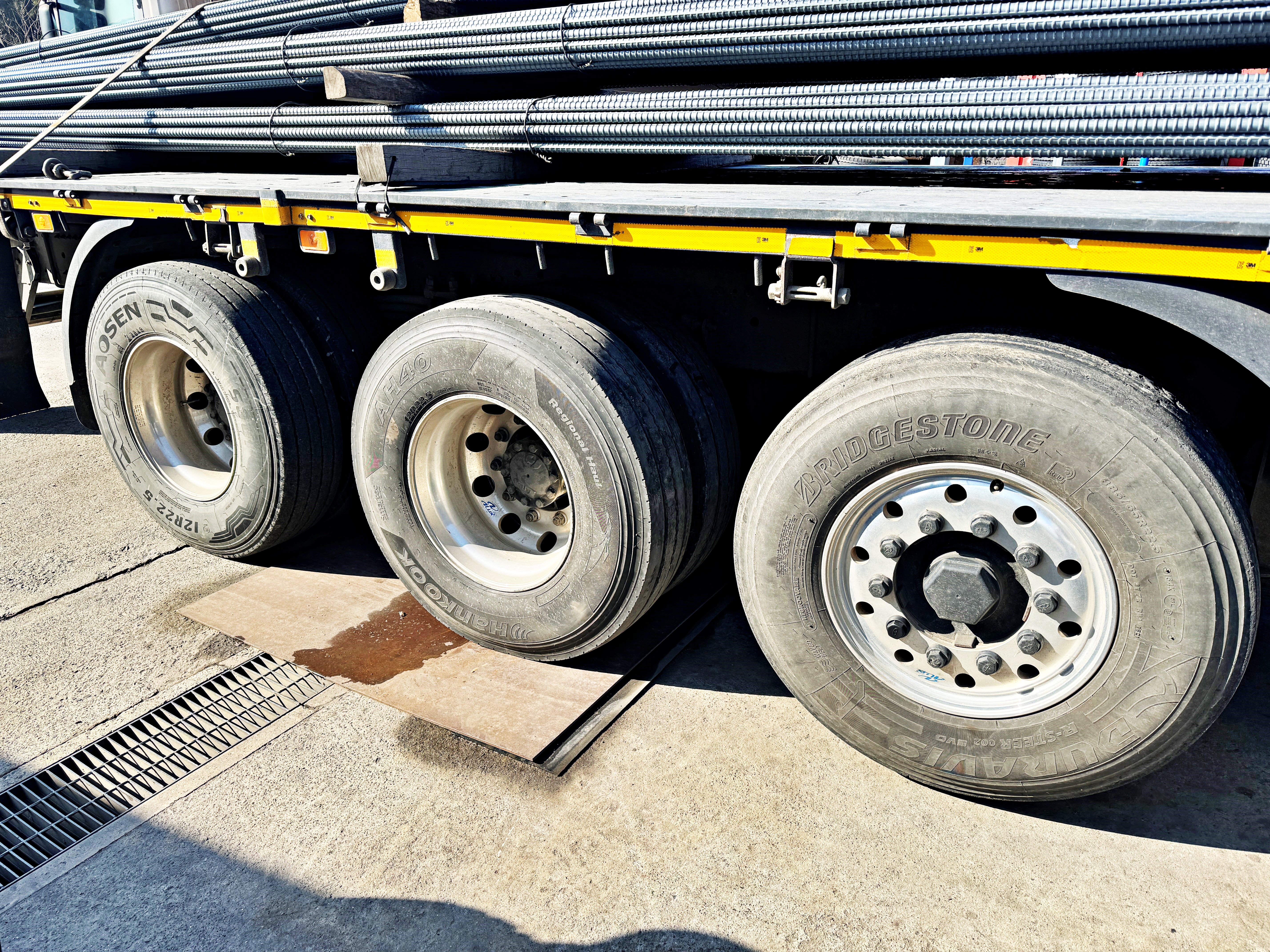 좌측부터 5,4,3축입니다. 타이어 브랜드가 모두 다르네요.