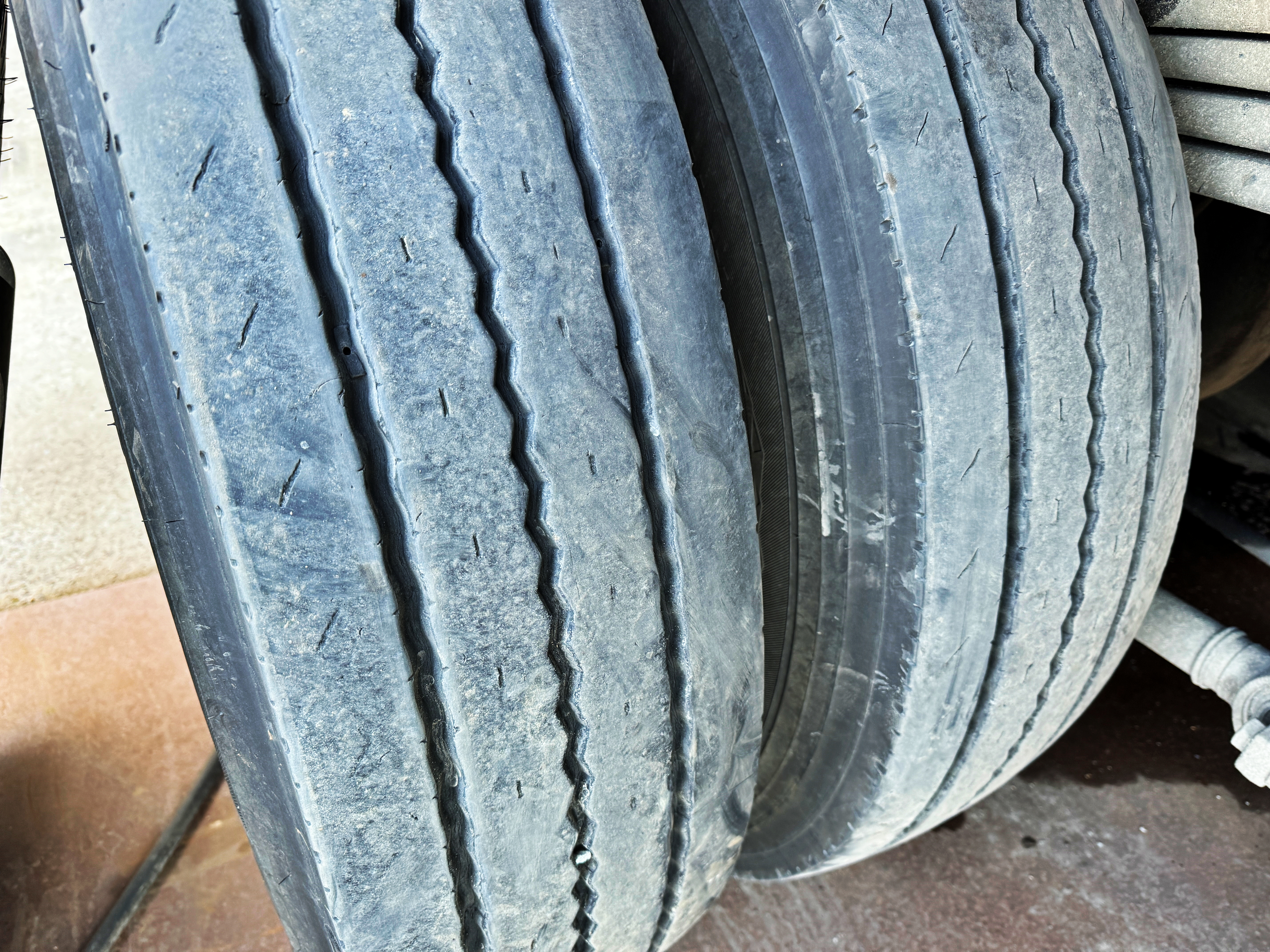 여름입니다. 승용차 타이어도 겨울 대비 더 많이 닳긴 하지만, 대형 화물차의 타이어는 승용차의 수십 배에 달하는 하중을 버티다 보니 닳는 모습이 눈에 보일 정도로 타이어가 마모되는 속도가