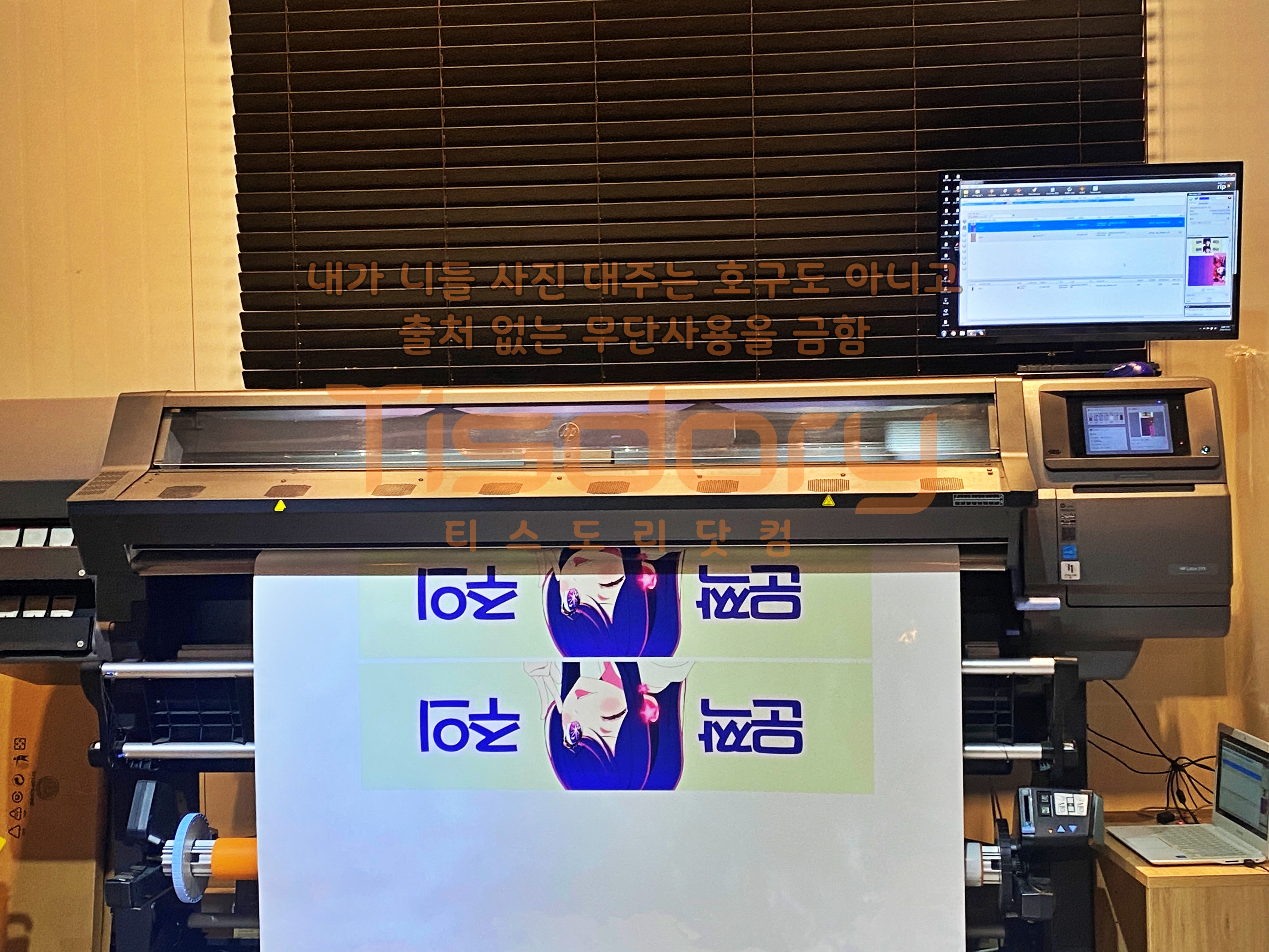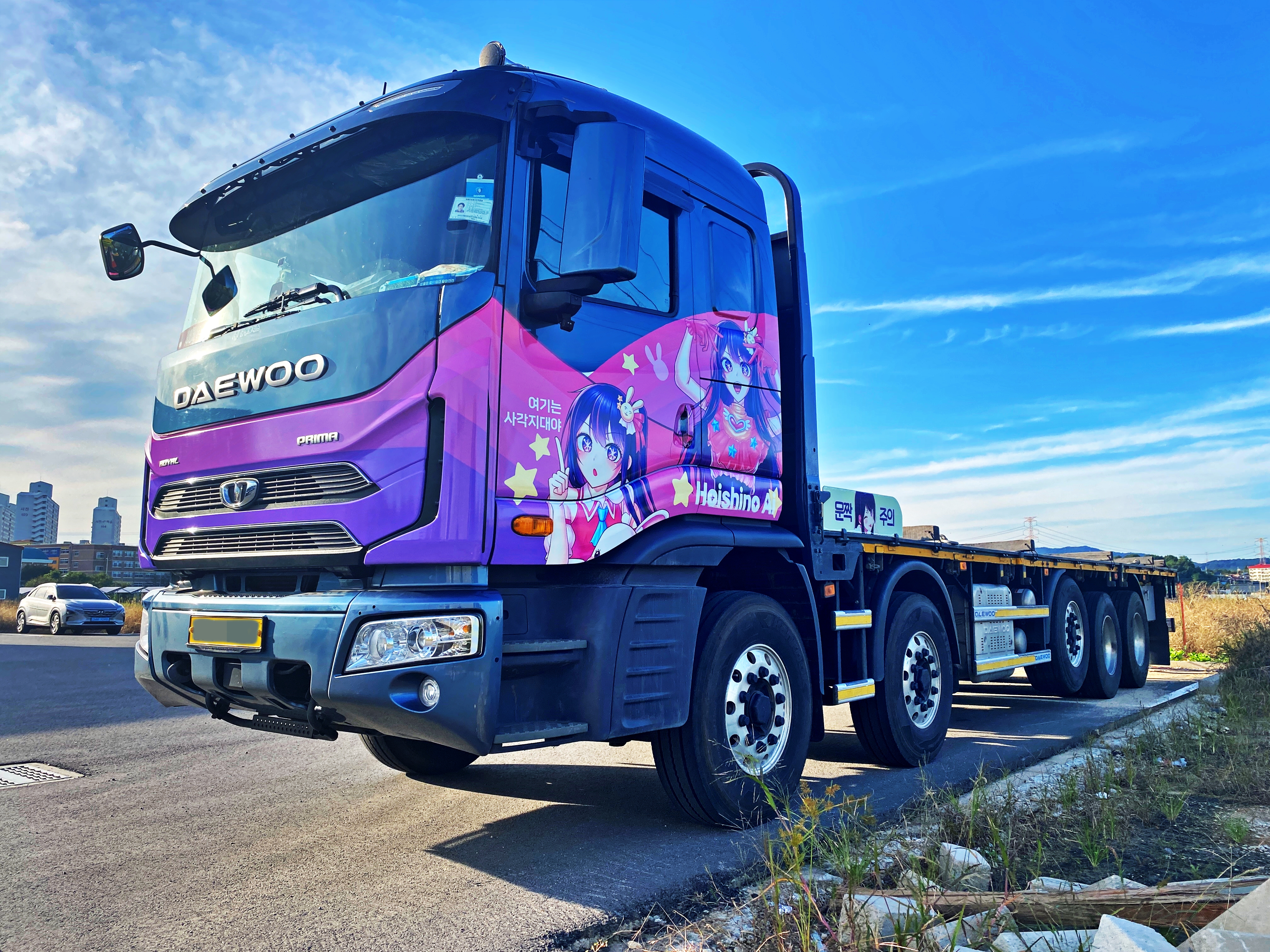 적재함 벽면에 들어갈 호시노 아이와 전면부에 랩핑 할 컬러가 출력되고 있습니다.