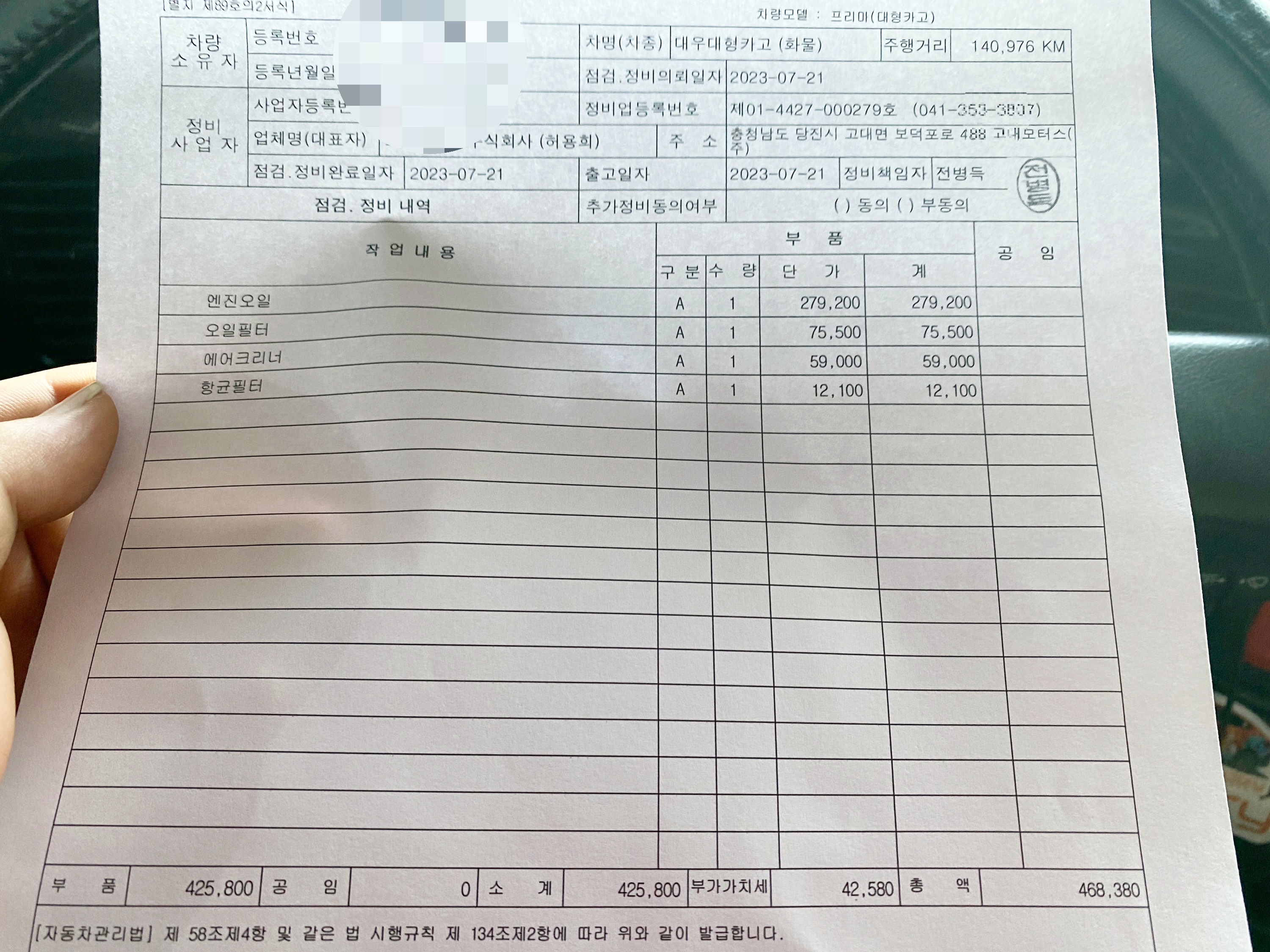 그간 오일값이 많이 올라서 총액이 468,380원이나 하네요.