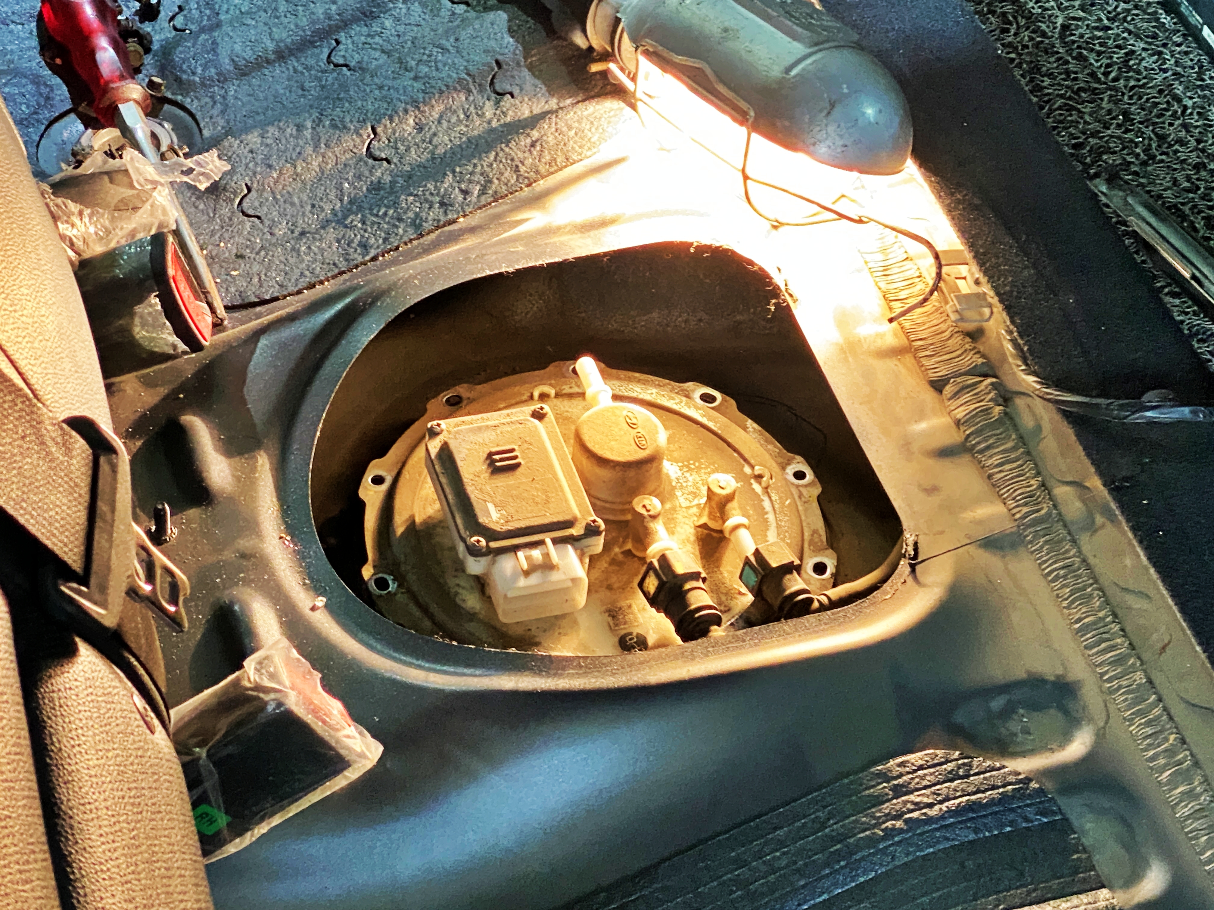 바로 작업이 진행됩니다. 요약하자면 뒷좌석 바닥 시트를 탈거하고 커버를 열고 컨넥터와 호스를 탈착한 뒤 연료펌프를 들어내면 되는 작업입니다. 스캐너를 물려 따로 에어를 빼줘야 하는 줄 알고 있었는데, 고압펌프가 아니라 저압펌프는 상관 없다고 하네요. 어렵지 않은지라 차주가 직접 해도 될 작업입니다.