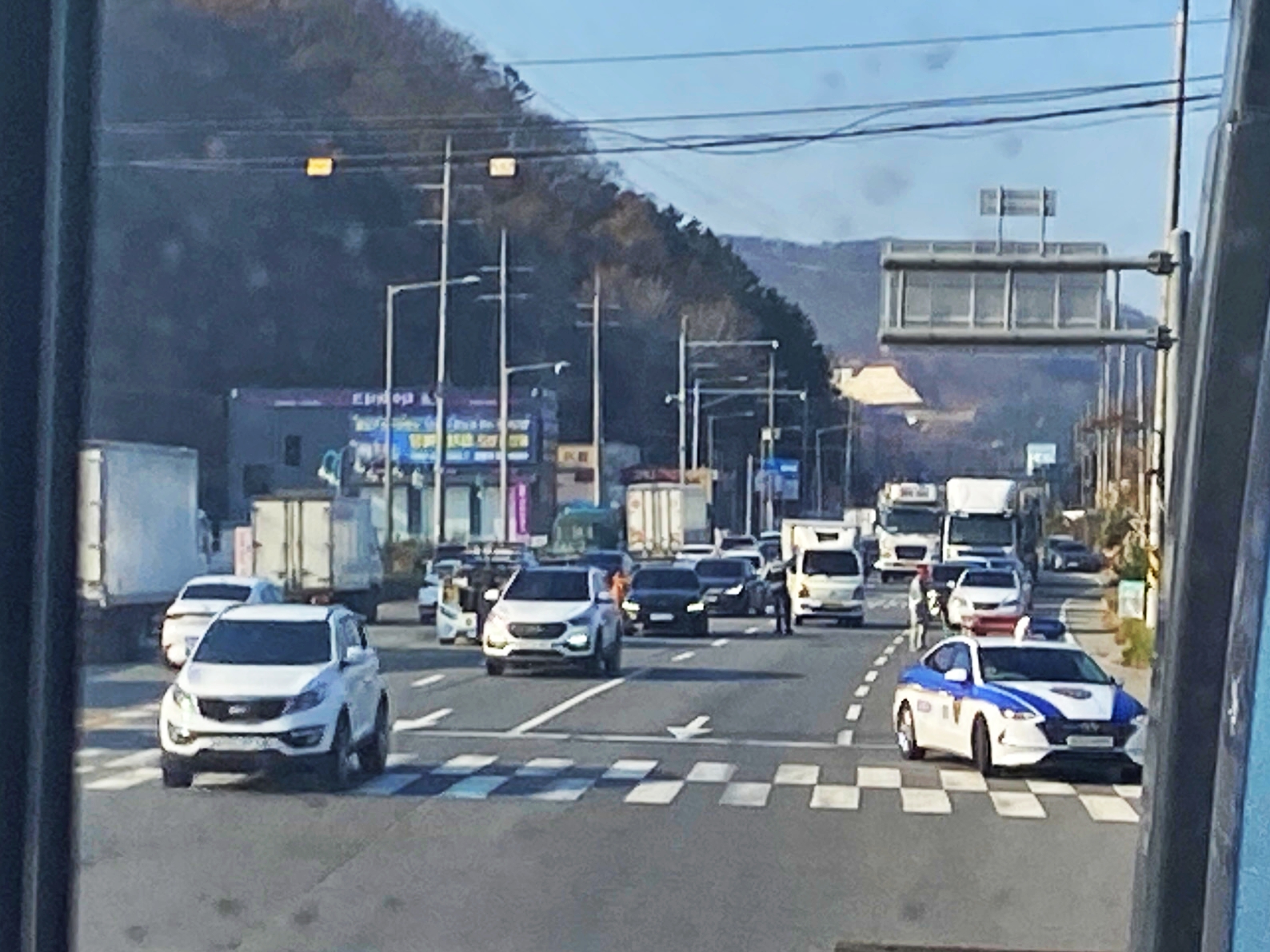 경찰 순찰차는 반대 용인 시내 방향에서 오네요.