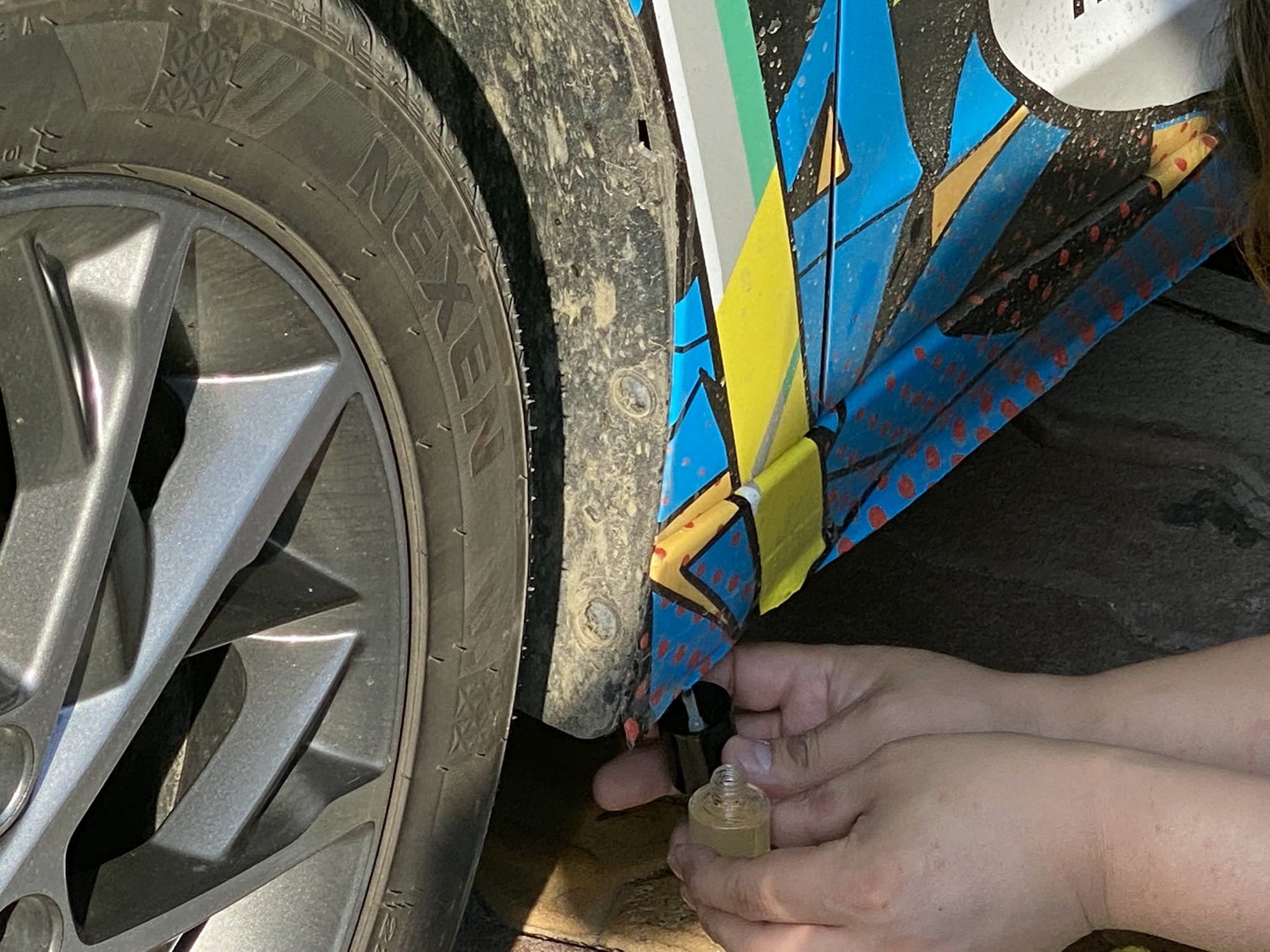 이 부위는 이전에도 가장 먼저 떨어졌던 자리입니다. 찢어져서 테이프를 붙이고 다니고 오만 개 생쇼를 하고 다녔었는데 이미 접착력이 떨어진 랩핑지에 본드를 발라 다시 보수했습니다.