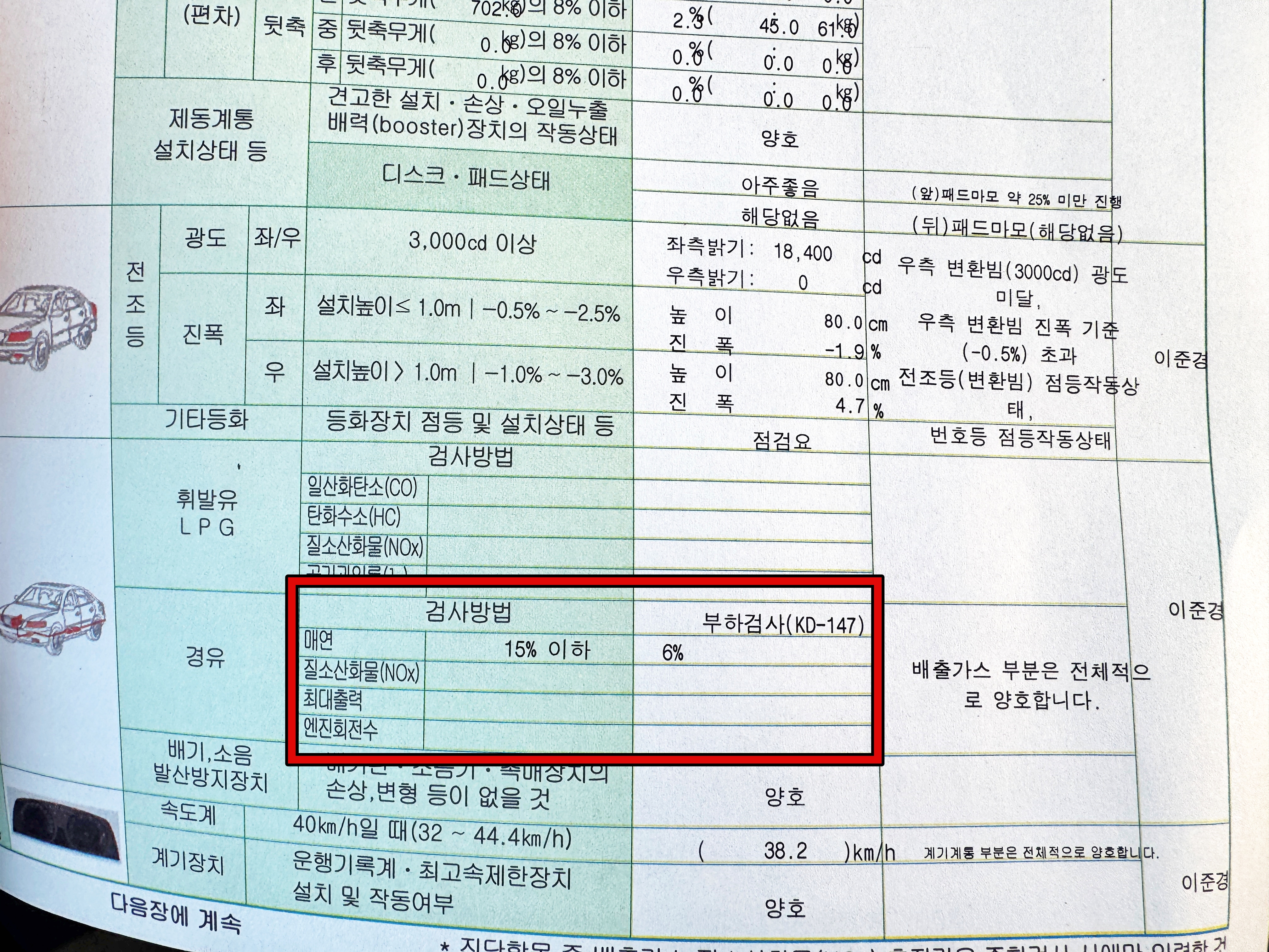 속도도 80km/h이상 나오고, 검사장 옆에서 지켜보면 엄청난 굉음이 들려옵니다. 차가 힘들어하고 실제 상태가 좋지 않은 차량들은 퍼지기도 하는데 이렇게 쥐어짜서 매연이 나오지 않을 차가 대체 얼마나 있겠습니까.