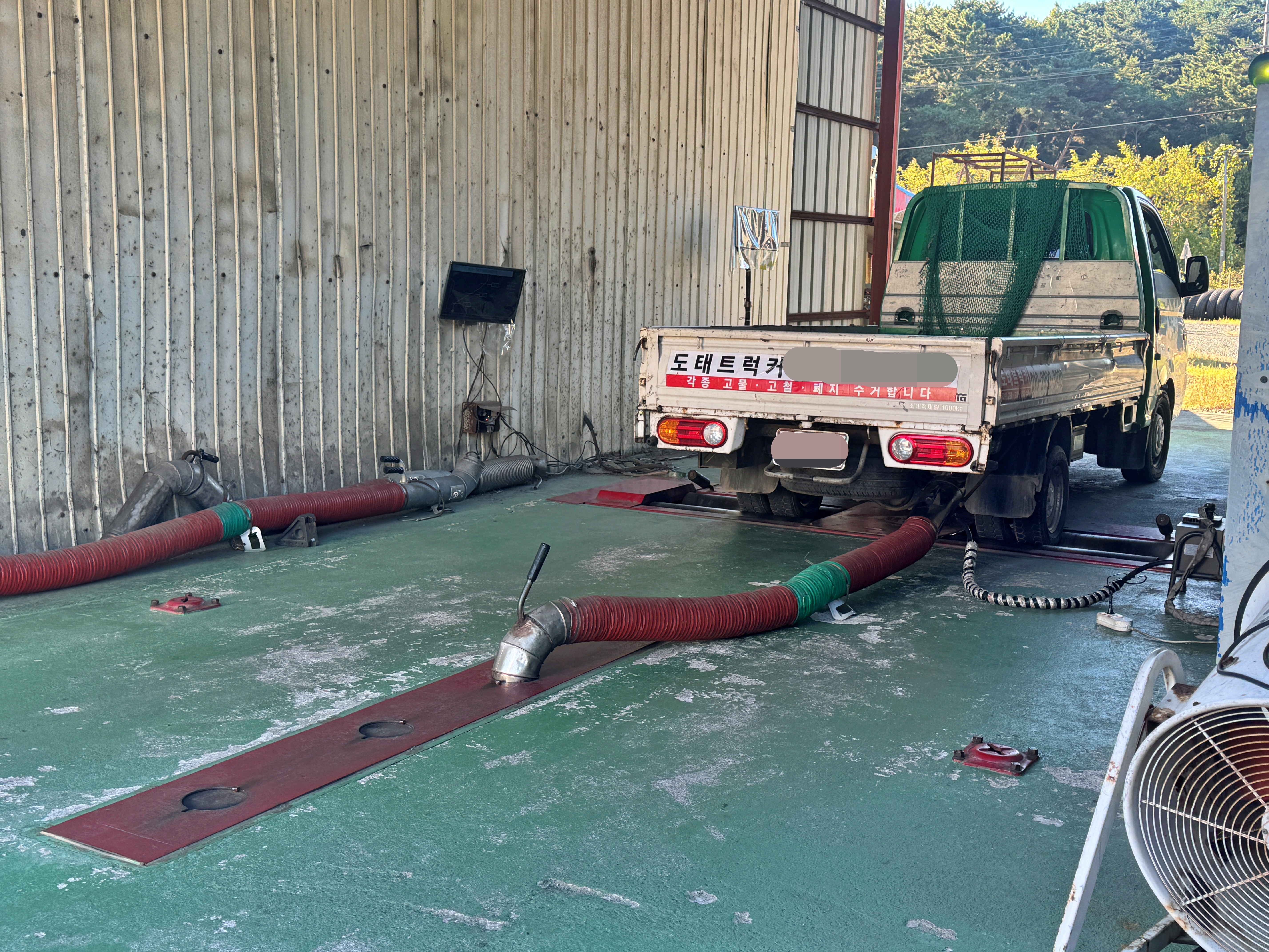 폐지수거용 차량이다 보니 편리성을 위해 합판으로 가벽을 세우고 다녔는데, 검사를 위해 가벽으로 세운 합판을 잠시 적재함 바닥에 내려놓습니다. 합판정도야 크게 무게가 나가지 않으니 적재함에 올려둬도 상관은 없습니다. 그렇게 가벽을 제거하고 대충 외곽도로에서 한 바퀴 밟아준 다음 업무시간에 맞춰 검사장으로 향합니다.