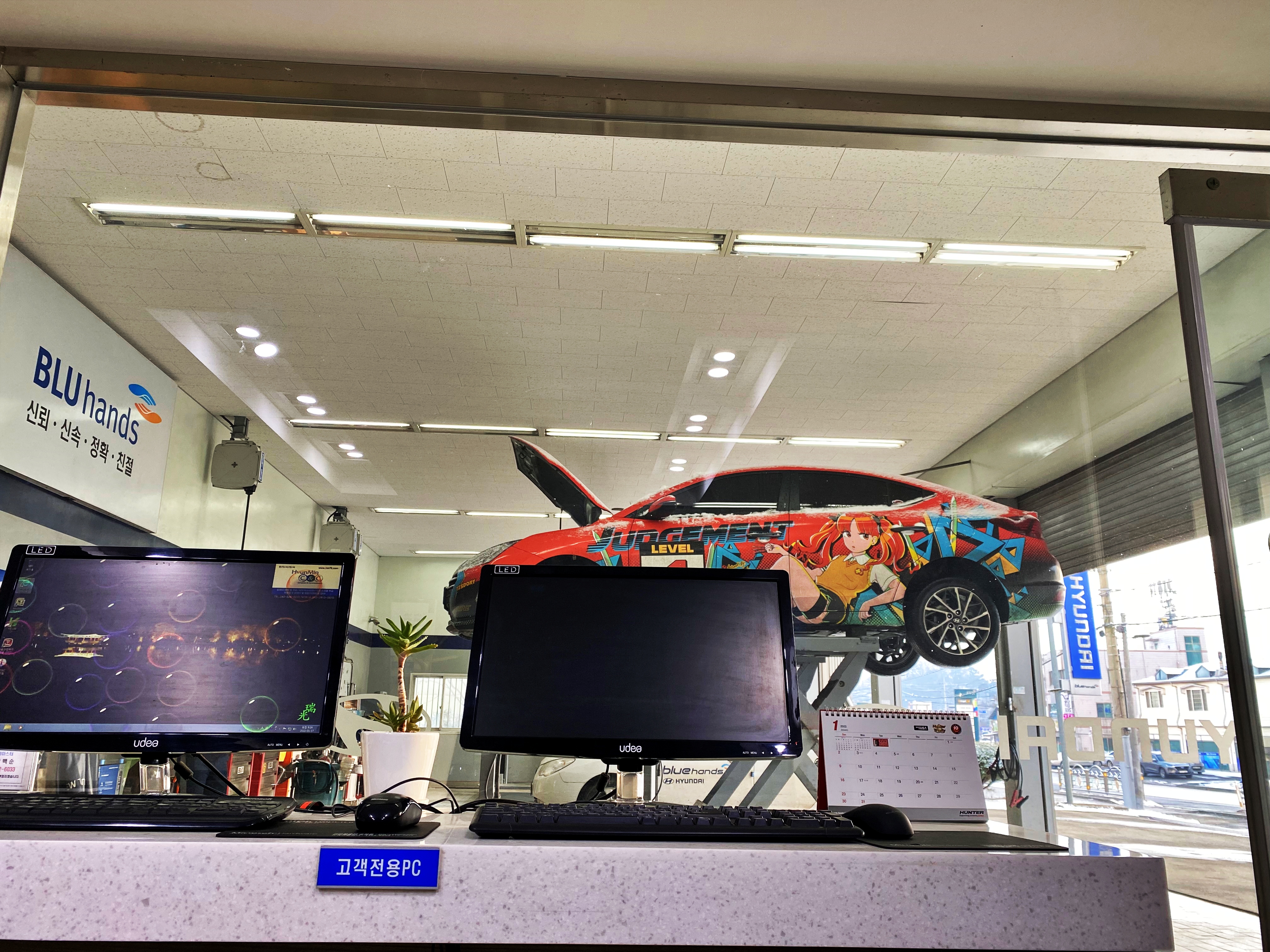 보통 2개월 주기로 교체했습니다만, 운행거리도 이전대비 짧아졌고 무엇보다도 시간이 없어 그냥 타고다녔습니다. 그러다가 퇴근길을 지나며 블루핸즈에 차가 없기에 처음 가보는 블루핸즈에 차량을 입고시켰습니다.