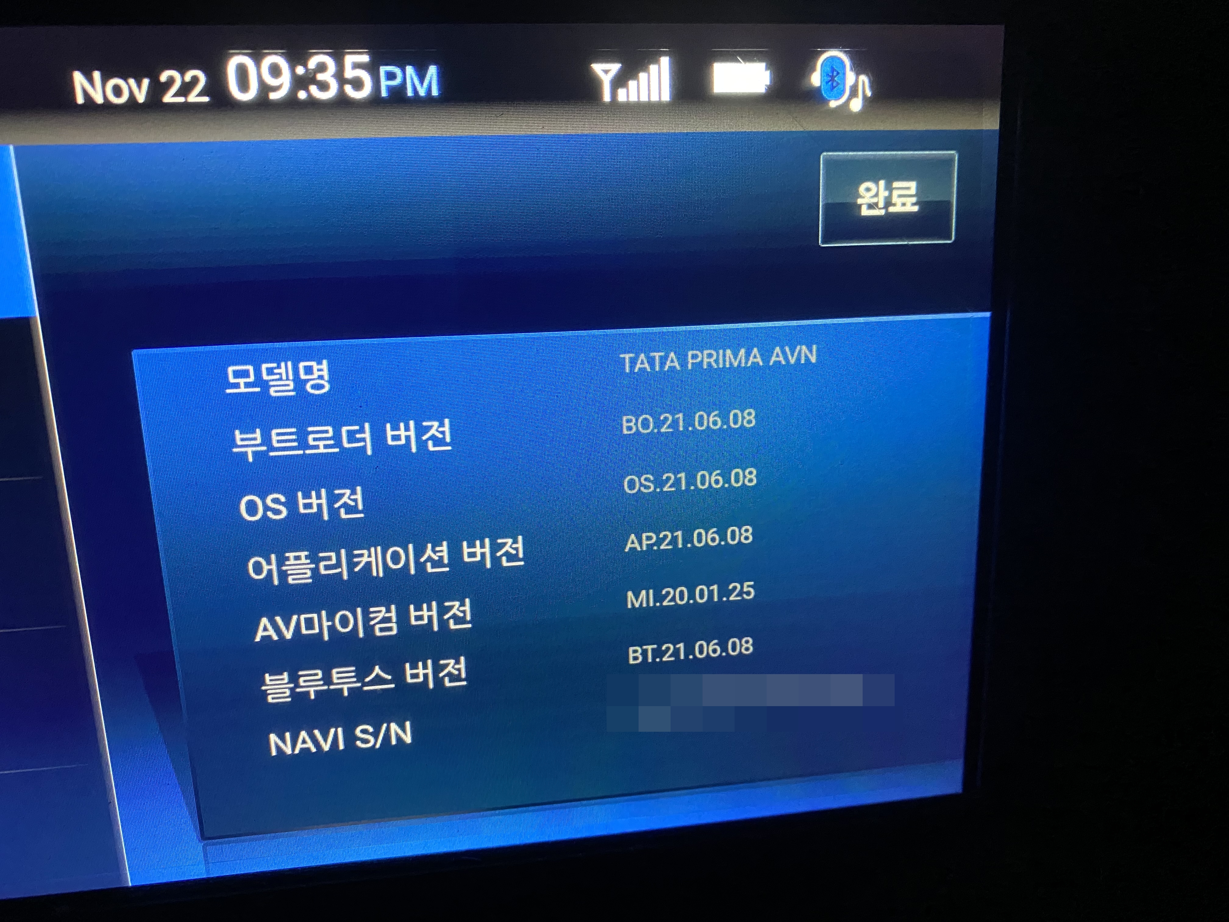 21년 9월 17일 버전이네요. 부디 이번 업데이트로 저 문제가 잡혔으면 좋겠습니다 ㅠㅠ 아직 실질적으로 주행해보지 않아 모르겠지만, 뭐 여튼 그렇습니다. 타타대우 공식 센터까지 찾아가기도 싫습니다.ㅠㅠ