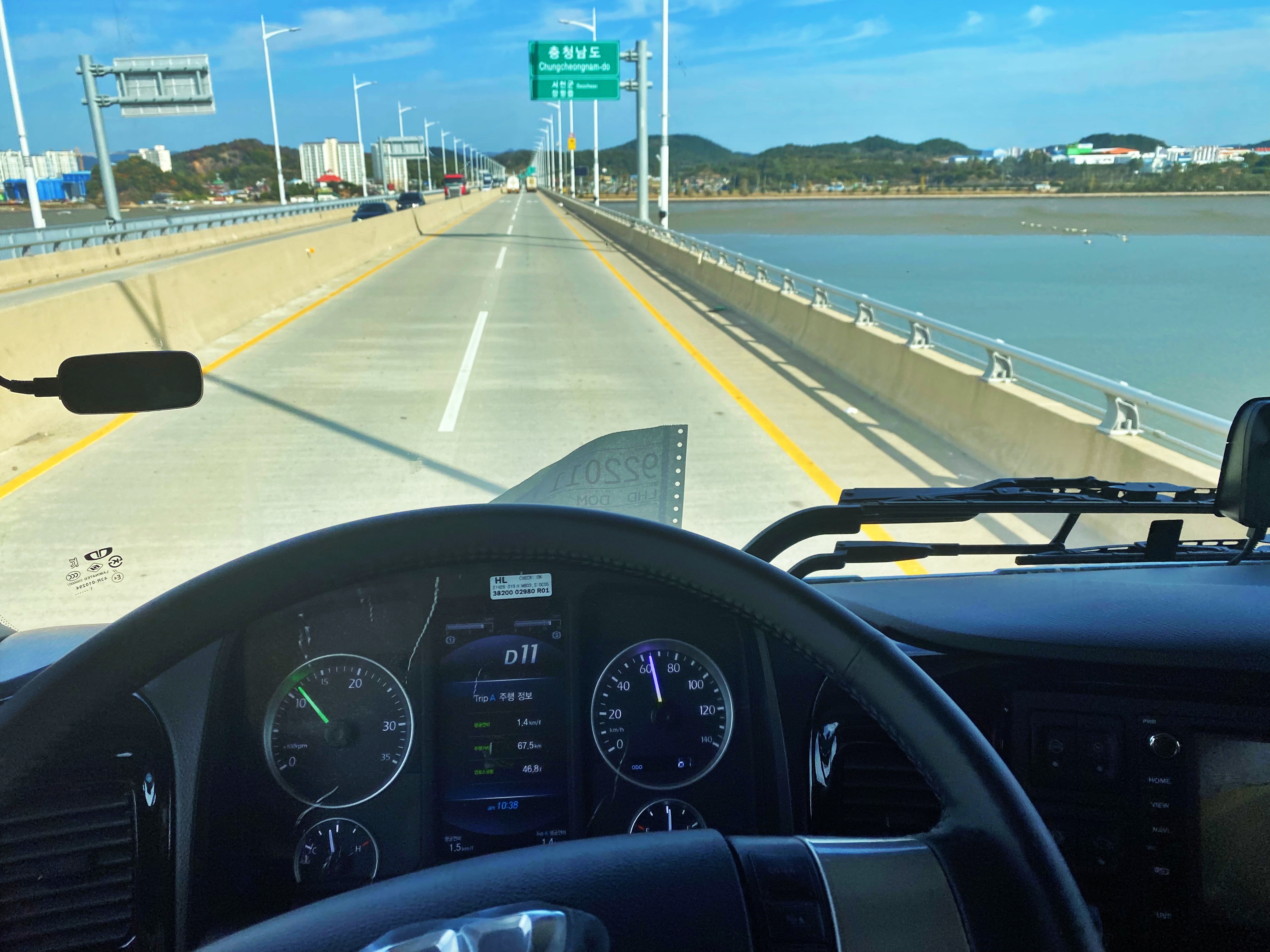 서천IC에서 고속도로를 올려 차고지인 당진으로 올라가려 했습니다만, 대천에서 화물 적재시 사용하게 될 나무를 얻어서 싣고 가라고 하네요. 그래서 고속도로를 타고 대천IC에서 하차하기로 합니다. 견습하며 타던 볼보보다 한참 높고 물서스라 꽤나 출렁거려 처음에는 적응이 어려웠지만 타고 가다보니 서서히 적응이 되더군요.