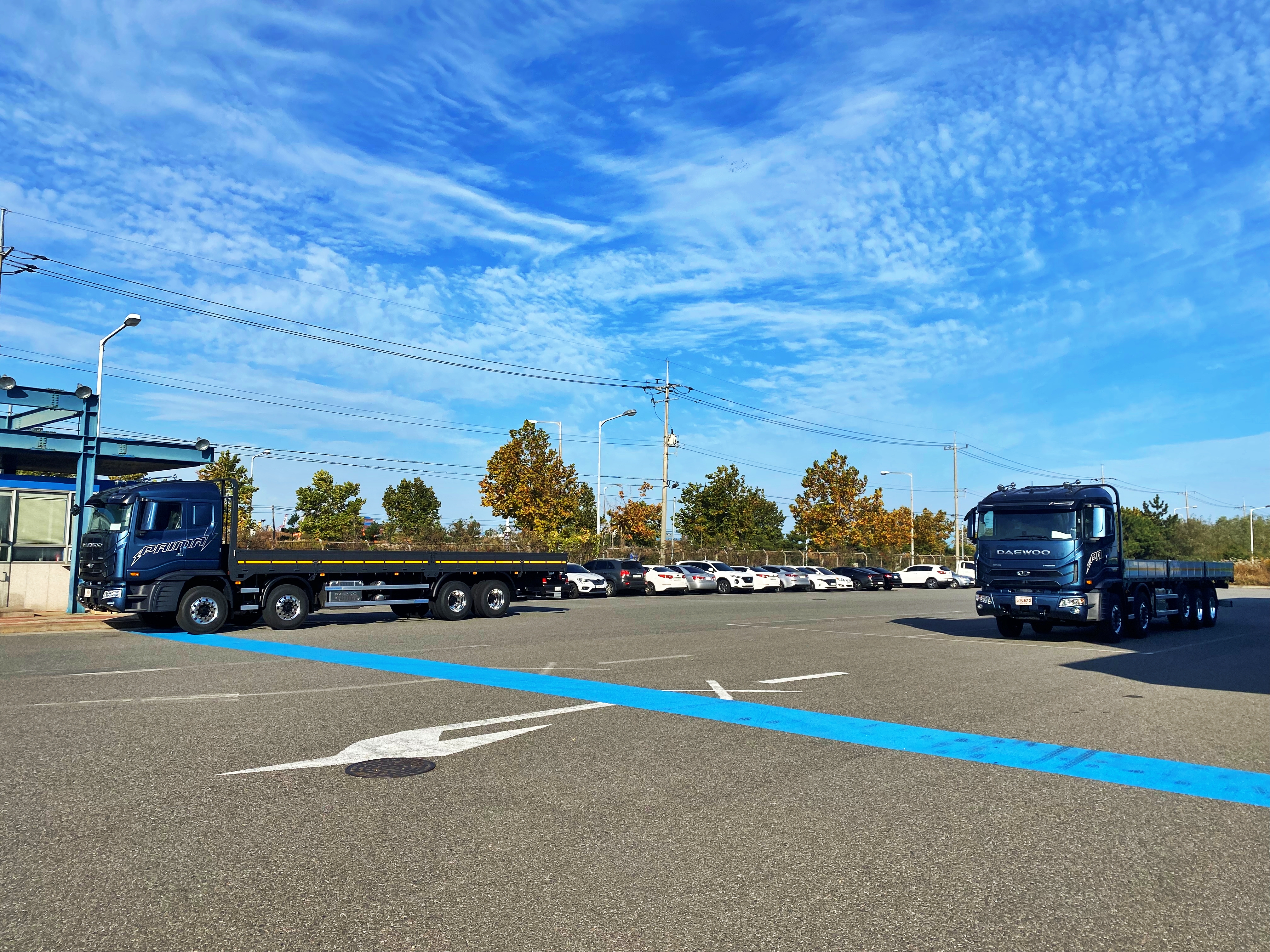 둘 중 하나가 제 차라고 생각했는데, 막상 사진을 다시 보니 좌측에 보이는 차는 19톤이네요. 아마 후축을 달아 25톤으로 구변하러 특장공장으로 갈겁니다. 일부 수입트럭의 순정 후축을 제외하곤 25톤이라고 다니는 후축 차량 다수가 사제 가변축을 달아 구변한 차량들입니다.
