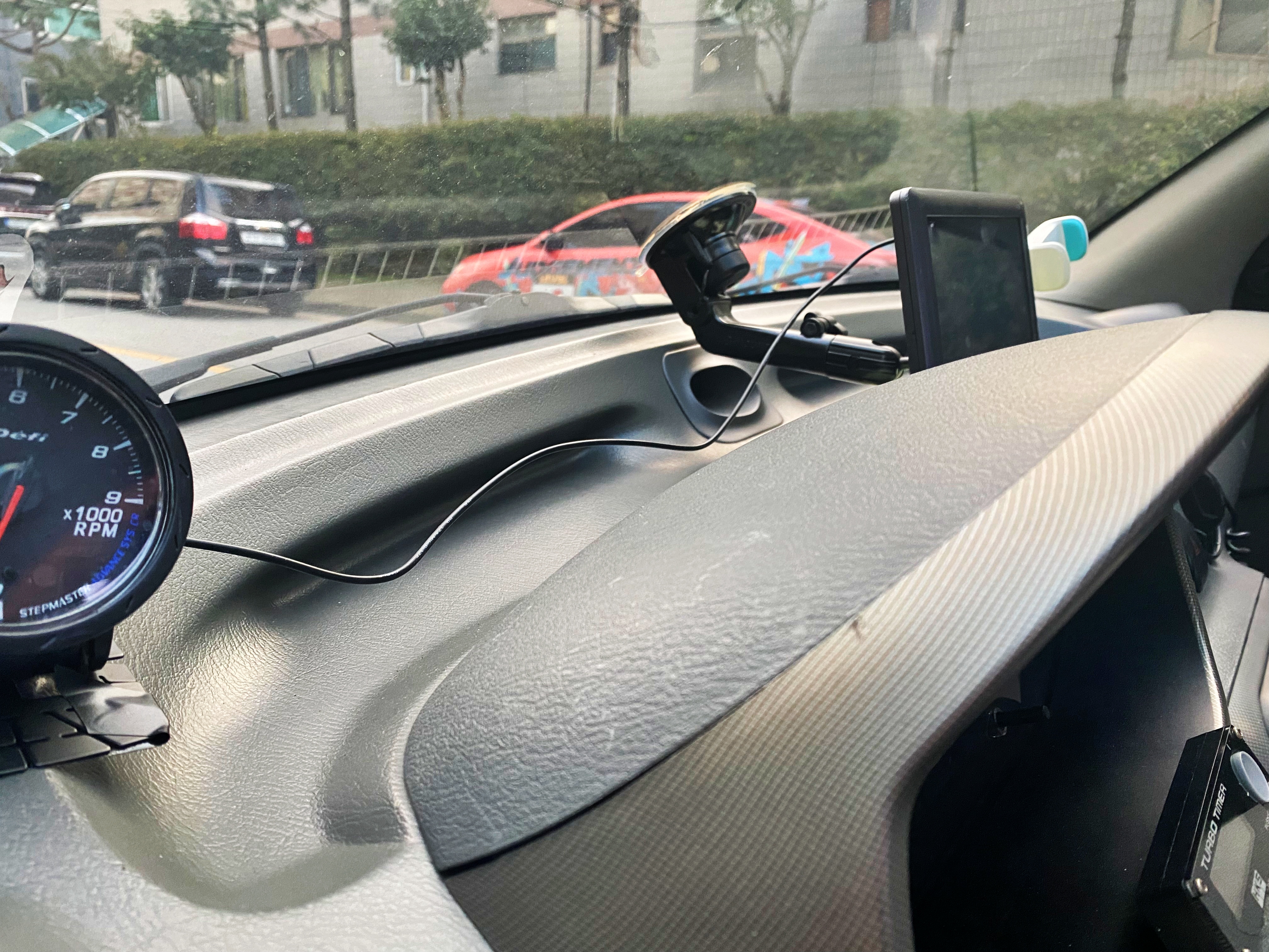 터보게이지와 RPM 게이지 배선이 있는 부분은 어쩔 방법이 없어 위로 올려 보냈지만, 주차번호판으로 막아 밖에서는 보이지 않습니다. 당연히 게이지가 가려주니 운전자 시야에서도 보이지 않지요. 뭐 이정도면 충분합니다.