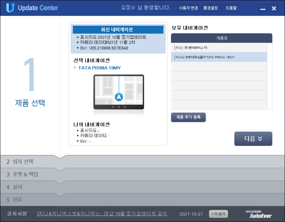 이 번호를 현대오토에버 홈페이지에 등록하면 됩니다. 로그인하여 등록한 뒤 프로그램을 실행시켜 업데이트를 진행합니다.