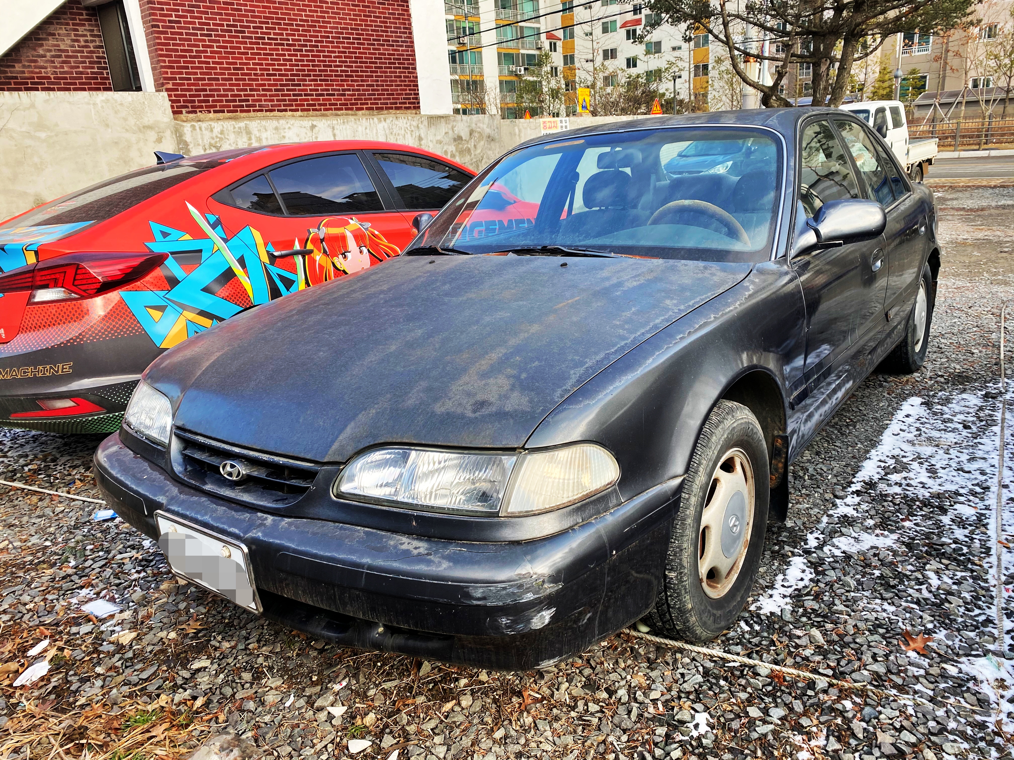 지난해 10월 목격했던 차량은 부분변경 이전 끝물 모델이고 이번에 목격한 차량은 95년 1월에 등록된 차량입니다. 상태도 그럭저럭이고 여러모로 그게 그거 같긴 합니다만, 쏘나타2 치곤 흔히 볼 수 없는 쥐색인지라 사진으로 남겼네요.
