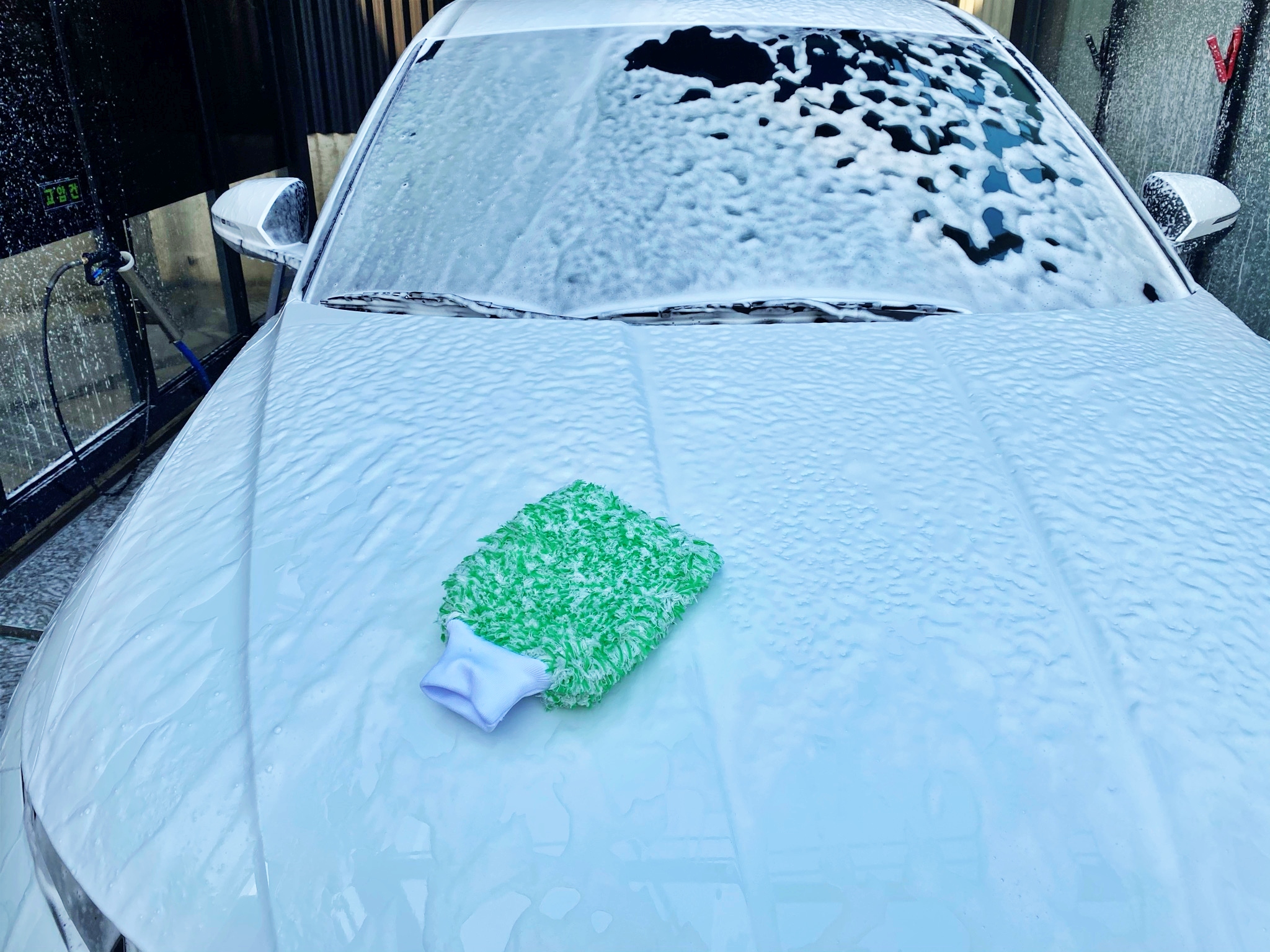 이 차에 넣어두고 다녀야죠. 폼건을 도포한 뒤 미트로 어린 아이 달래듯이 잘 닦아줍니다.