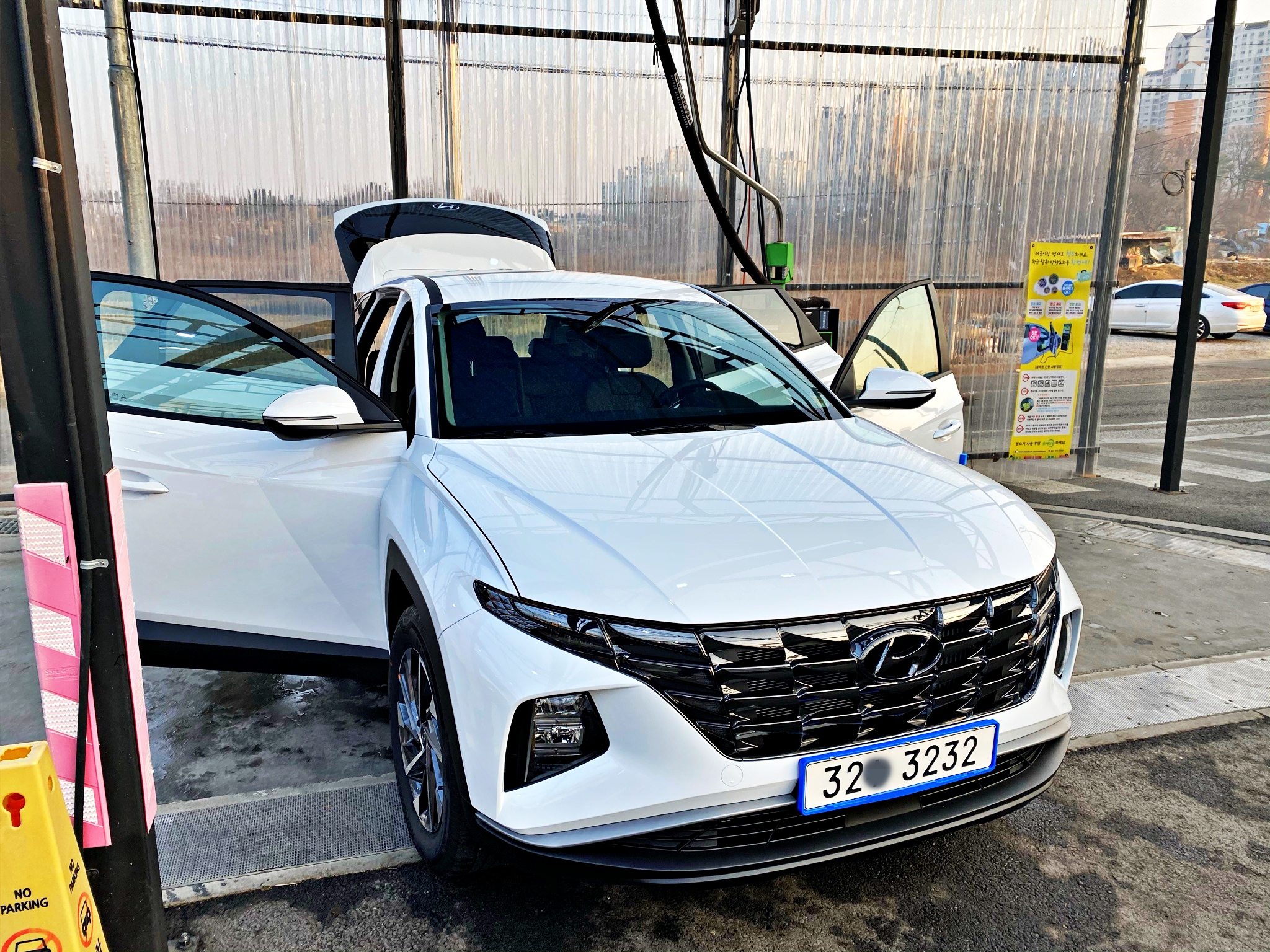 다만 하부세차가 불가능한 자리네요. 뭐 어쩌겠습니까. 하부세차가 가능한 자리가 나오길 기다리겠다며 존버하기엔 기약이 없으니 일단 비어있는 자리로 들어갑니다. 새차인지라 하부에 오염물이 많이 묻지도 않았겠지요. 그냥저냥 물을 하체까지 신경써서 쏴주는걸로 대신하기로 합니다.