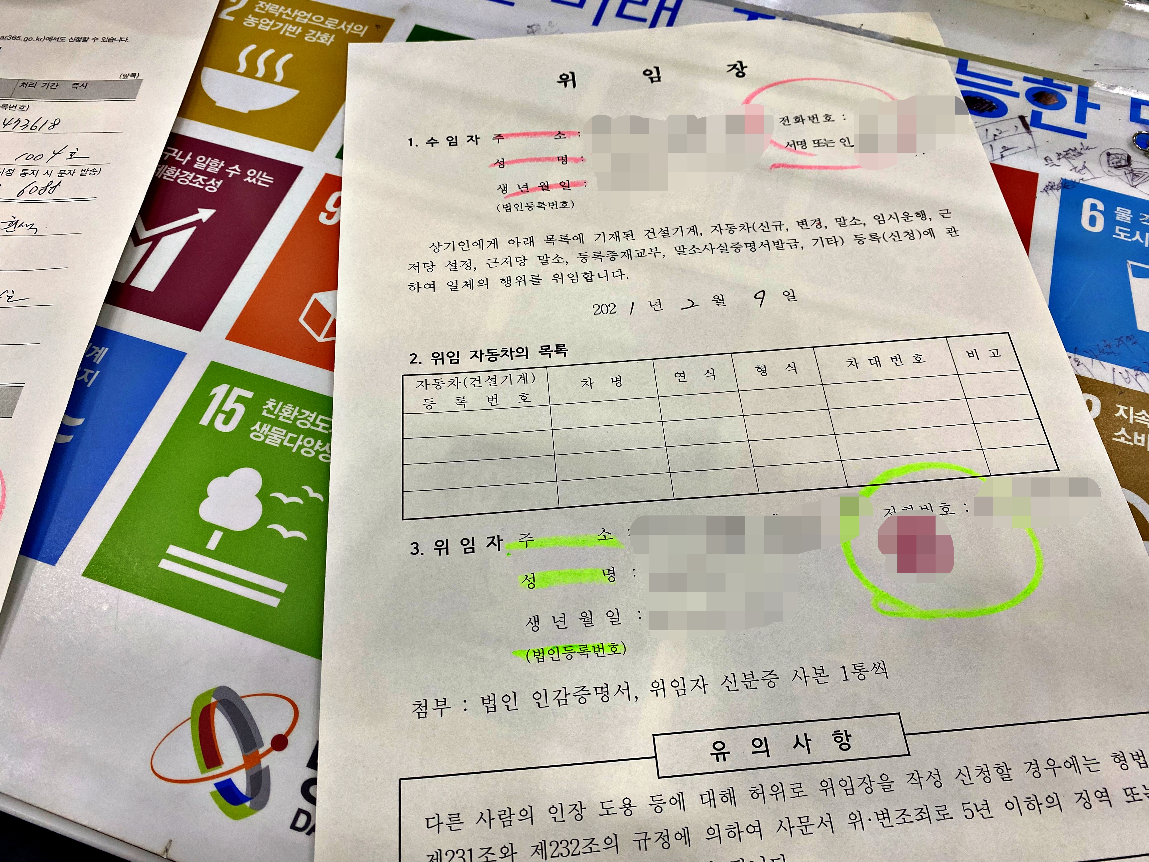 위임장은 보지 못했었는데 저기 있었군요. 신차니까 자동차 신규등록 신청서를 작성하면 됩니다.