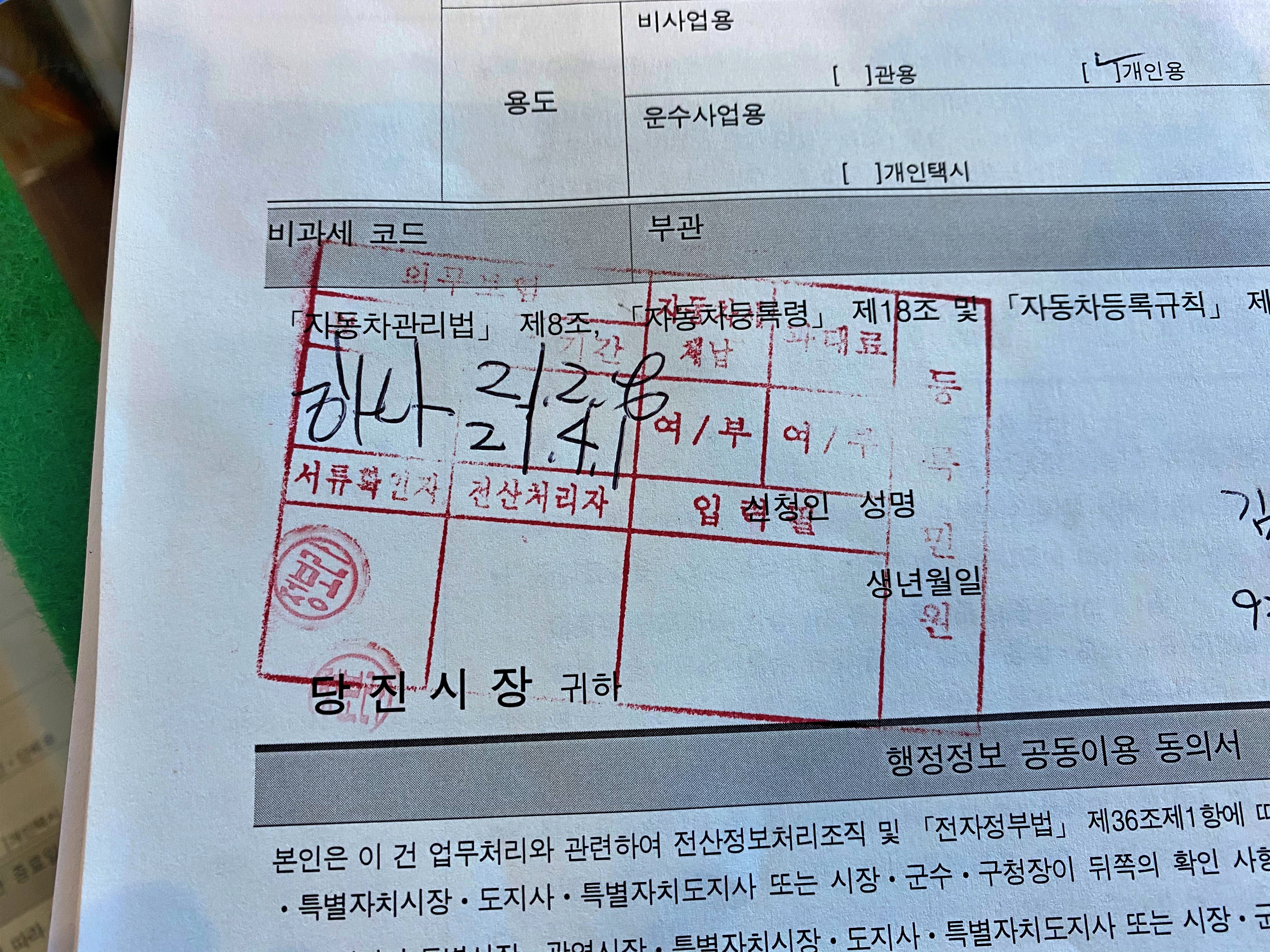 여튼 비 천공으로 번호판을 주문한 뒤 다음날 아침 다시 당진시청을 찾았습니다.