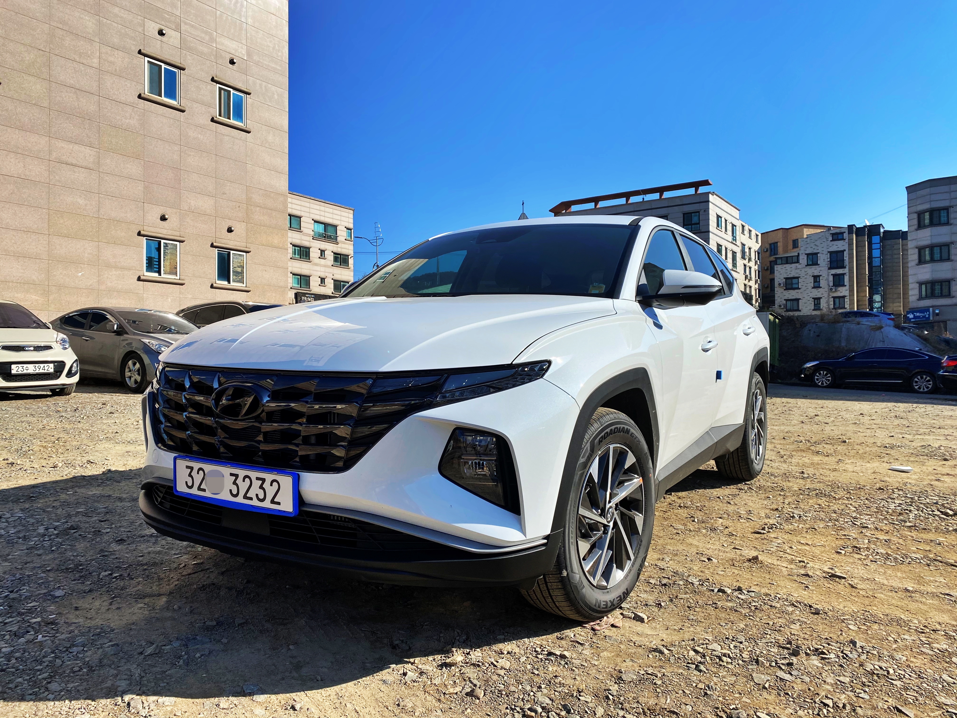 확실히 하얀차라 때가 때가 타면 금방 티가 납니다. 개인적으로 신형 투싼은 어두운색 계열이 잘 어울리는 느낌이고 저는 무채색보다는 유채색을 선호하긴 합니다만, 투싼은 진녹색 계열의 아마존그레이와 빨간색인 크림슨 레드 말곤 유채색이 없습니다. 그래도 제가 선택해야 한다면 유채색을 택할 것 같지만 어릴적에 제가 연두색으로 하자고 해서 칼로스를 연두색으로 출고했기에 여러모로 부모님 선택을 존중해야 합니다.