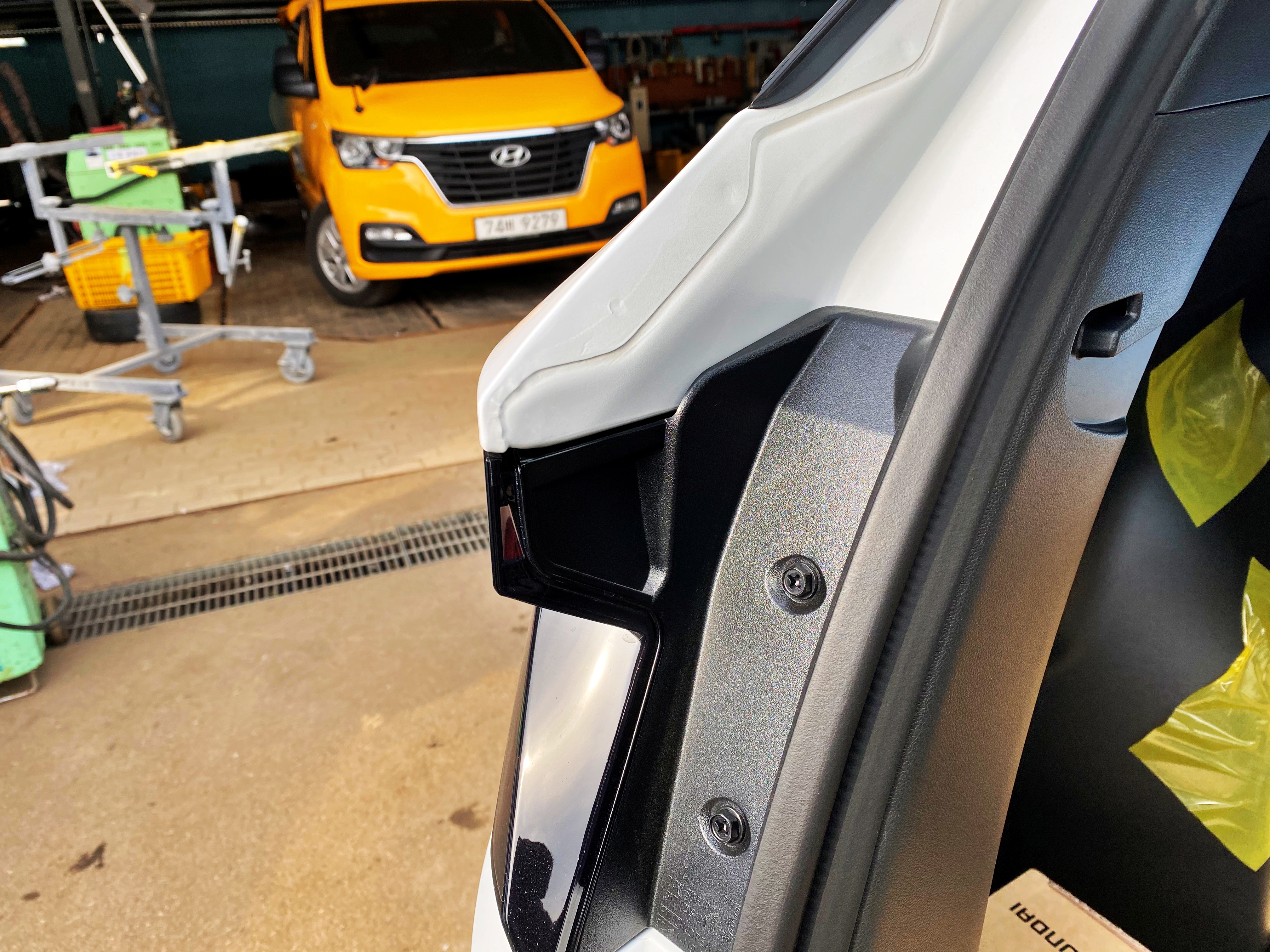 이미 인수증에 싸인을 했고 출고가 된 마당에 다시 공장으로 돌려보내 해당 부분의 수리를 하고 올 수 없는 부분이기도 하고 여러모로 난처한 상황인지라 블루핸즈를 찾아가 교정을 받아 단차를 조금이라도 줄여보기로 합니다. 일반적인 경정비만 가능한 블루핸즈로 가도 좋지만, 판금 도장까지 같이 하는 블루핸즈로 가야 사실상 제대로 보고 단차를 맞춰줍니다.