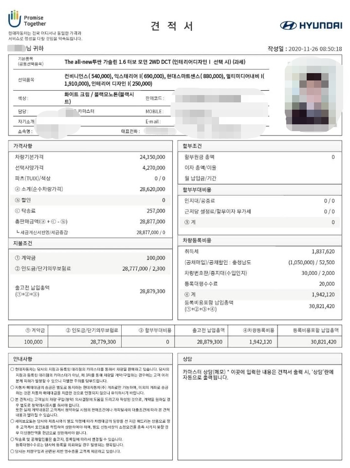 | 디 올 뉴 투싼(NX4) 1.6T 계약. (2) | 2020.11.27 |