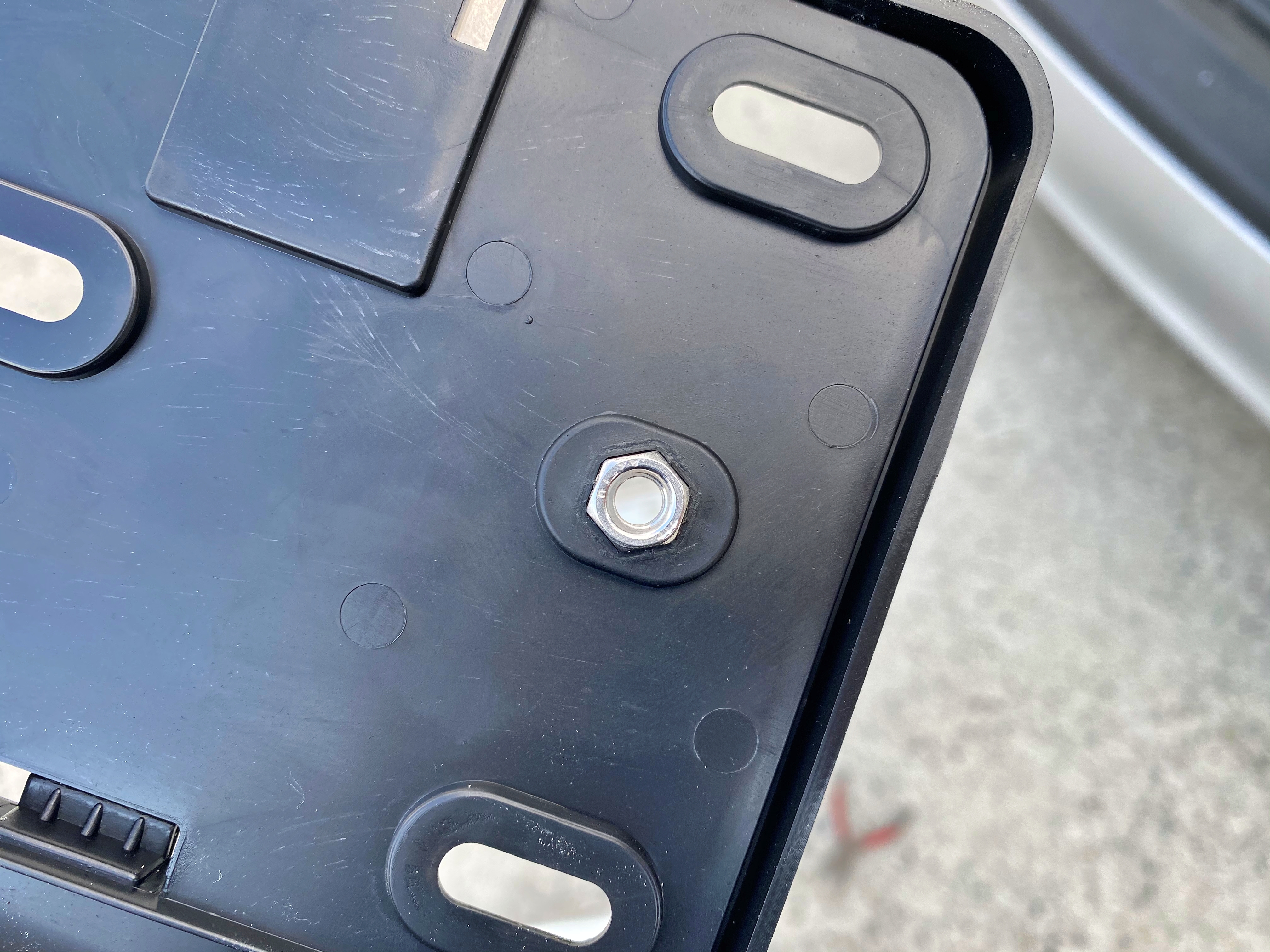 어지간하면 번호판 플레이트 뒷면에 이런 너트구멍이 존재할겁니다.