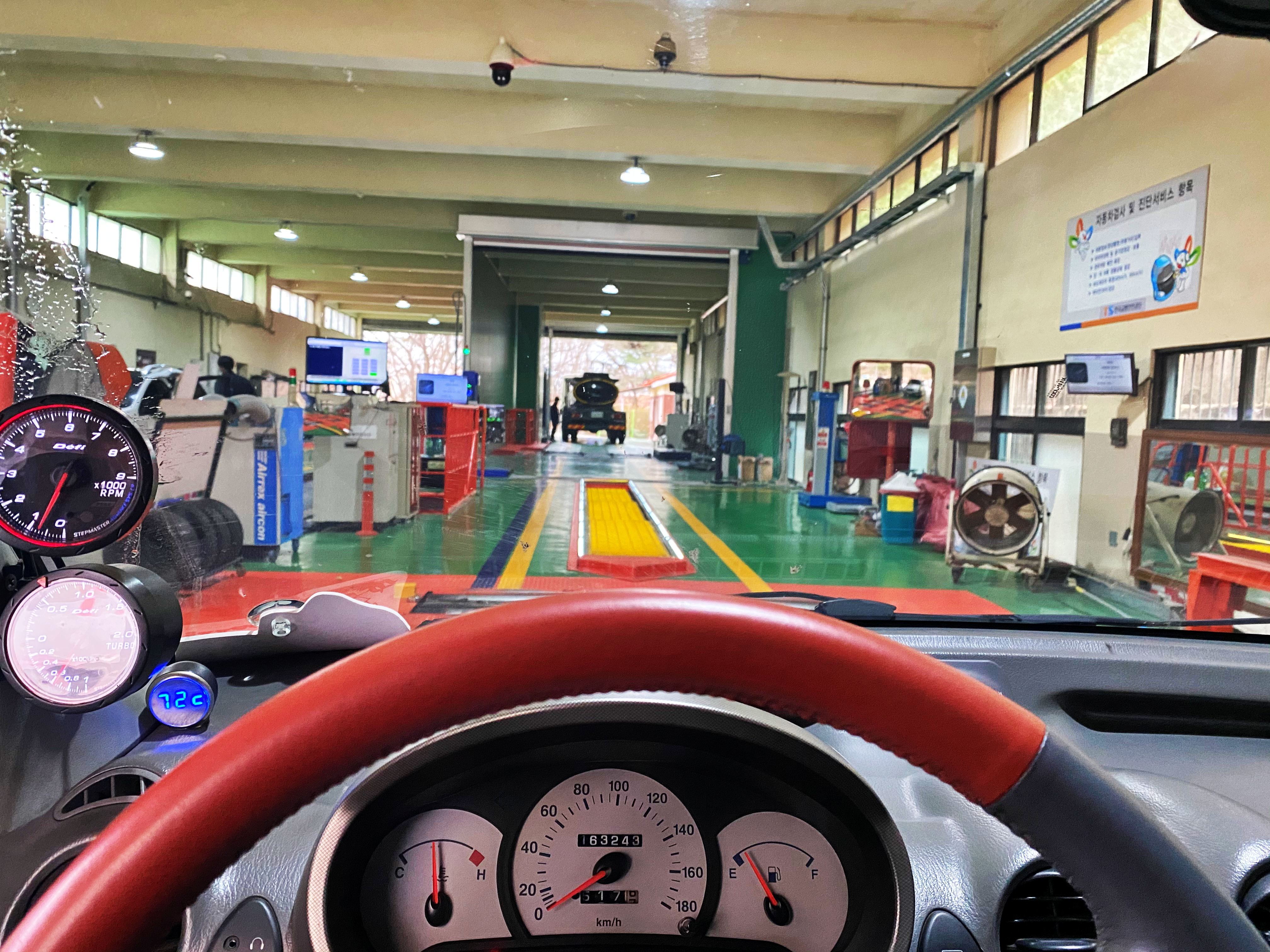 서류를 챙겨서 차를 타고 사무실 뒷편 검사장으로 향하면 됩니다. 물론 다른 차들이 검사를 위해 대기하고 있으니 그 뒤에 서서 기다리기만 하면 됩니다. 뭐 기다리는 시간이 길 뿐이지 검사장에 들어가서는 그리 오래 걸리지 않을뿐더러 금방 끝납니다.