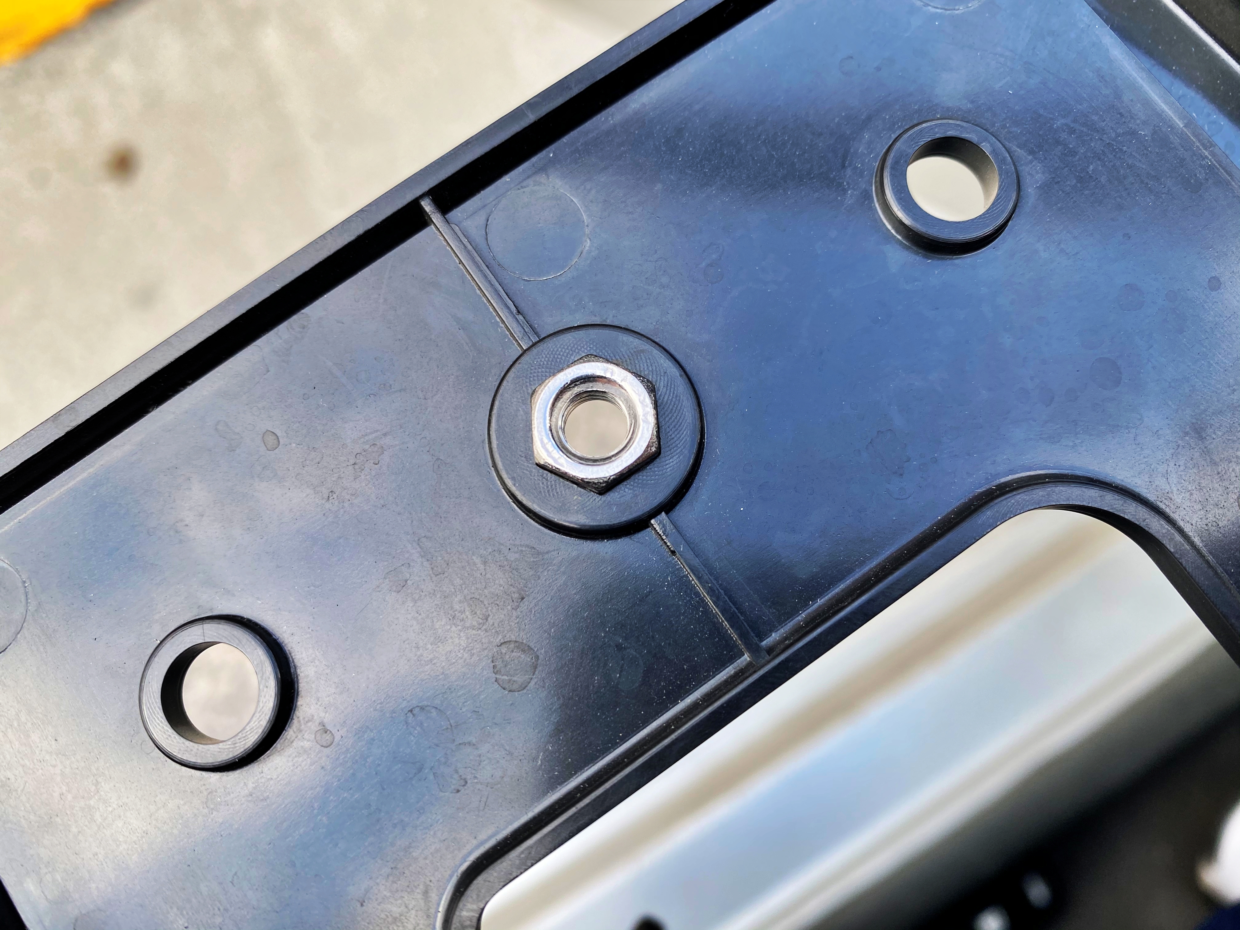 기존 방식과 동일한 천공형 세자리 번호판을 부착하고 싶으시다면 너트를 두개 구입하시면 되고, 반사번호판을 포함한 비천공형 번호판을 부착하고 싶으시다면 하나면 구입하시면 됩니다.