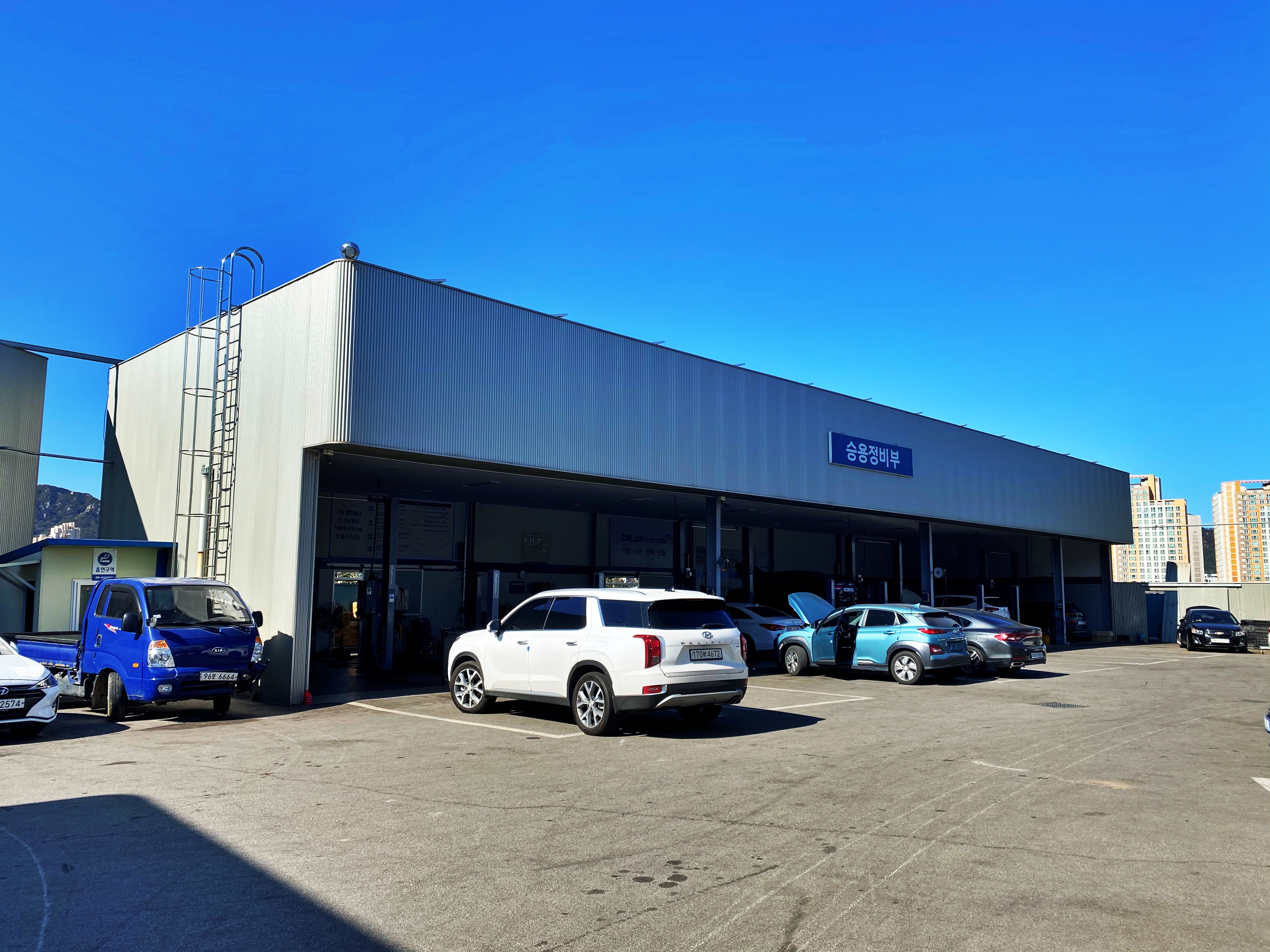토요일 오전. 바로 집 근처라 자주 찾는 내포현대서비스에는 정비를 위해 찾은 차량들로 가득합니다.