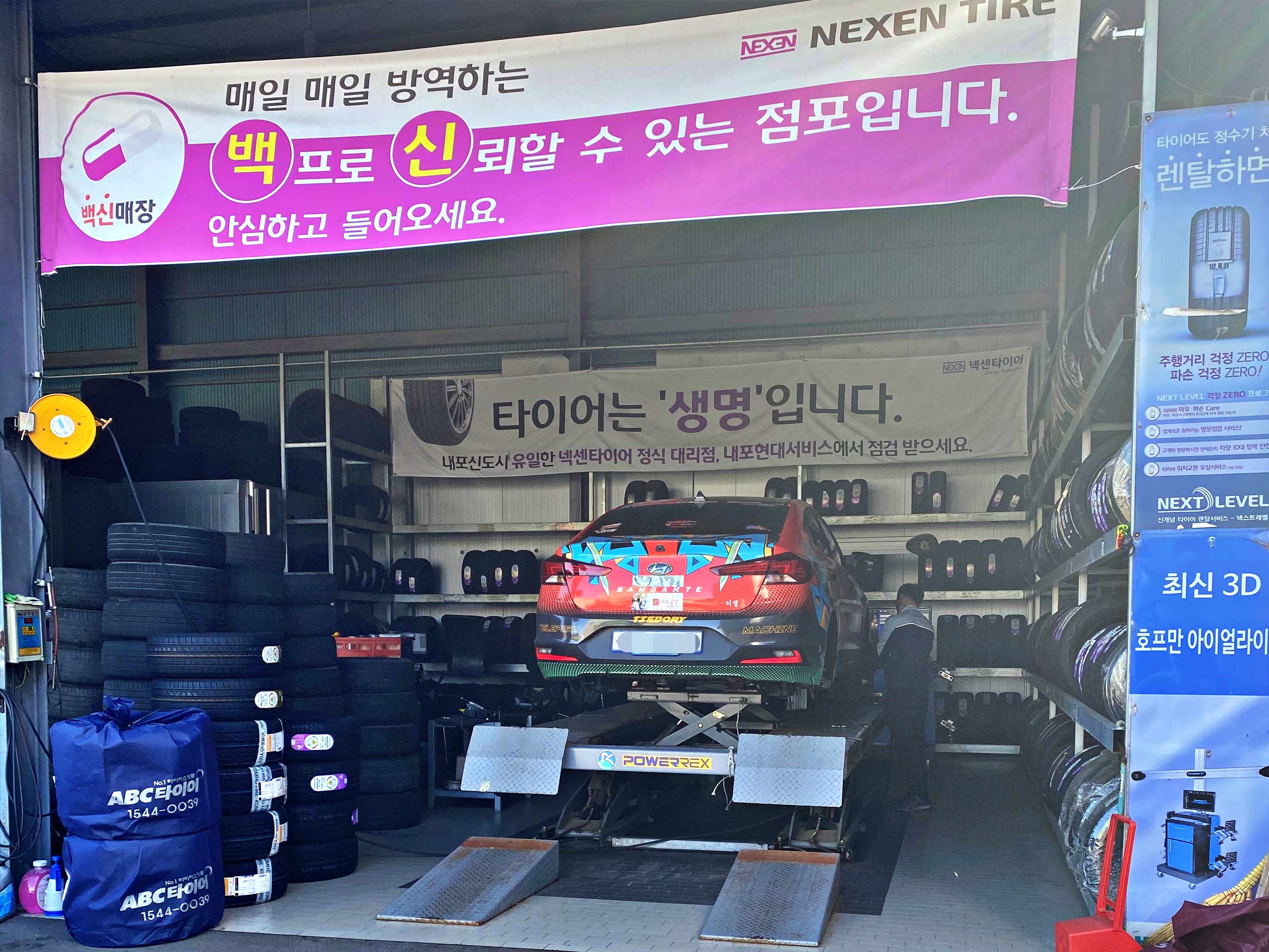 타이어 교체. 내포현대서비스 구석에 타이어집이 있다. 예전에는 따로 점주가 있었으나 지금은 직영으로 운영하는듯.