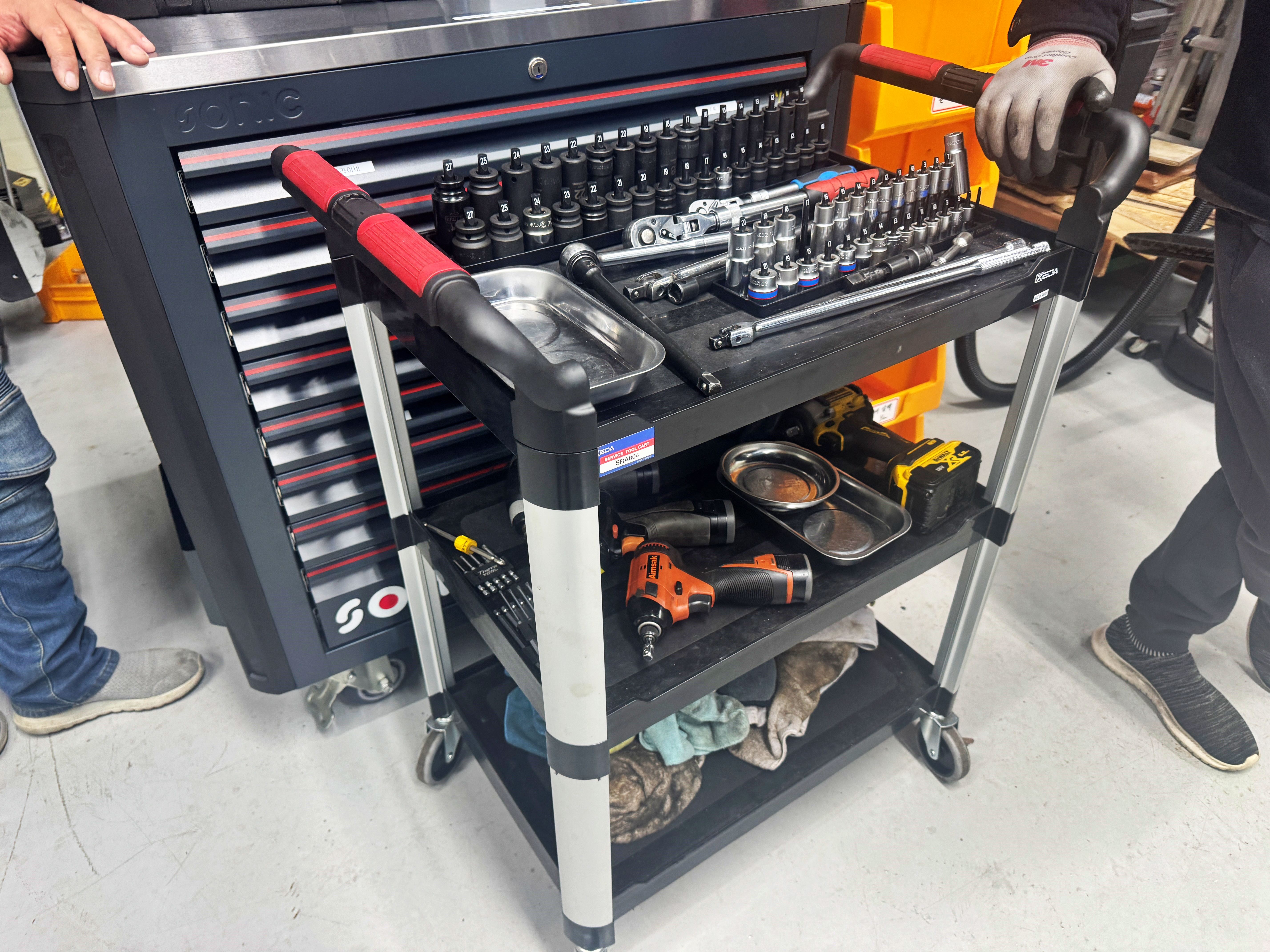 깔끔하게 정리된 공구통과 공구들의 모습이 보입니다. 손님이 한 팀 빠져나가면 바로 정리를 하셔서 항상 청결한 상태로 유지되고 있었습니다.