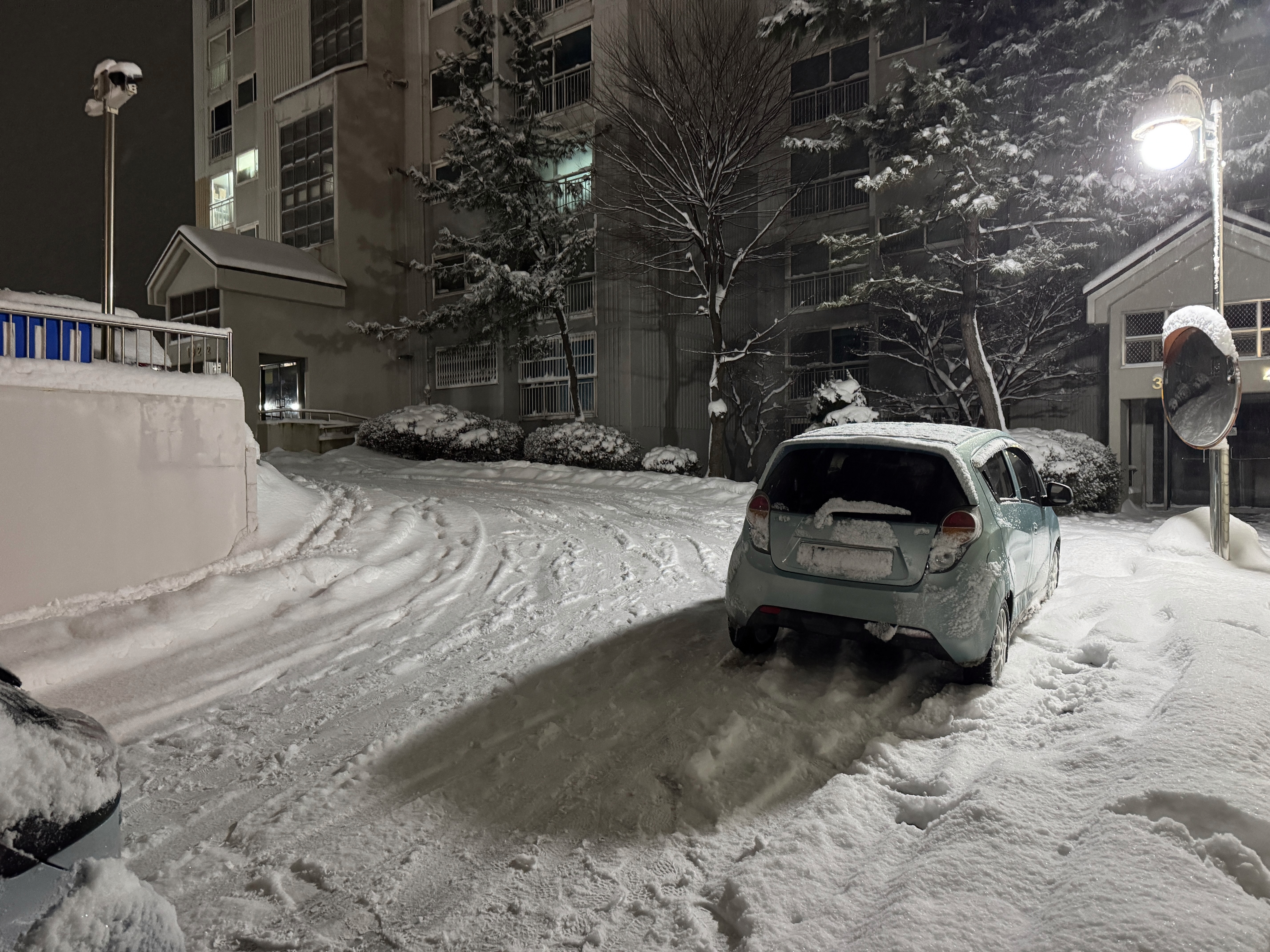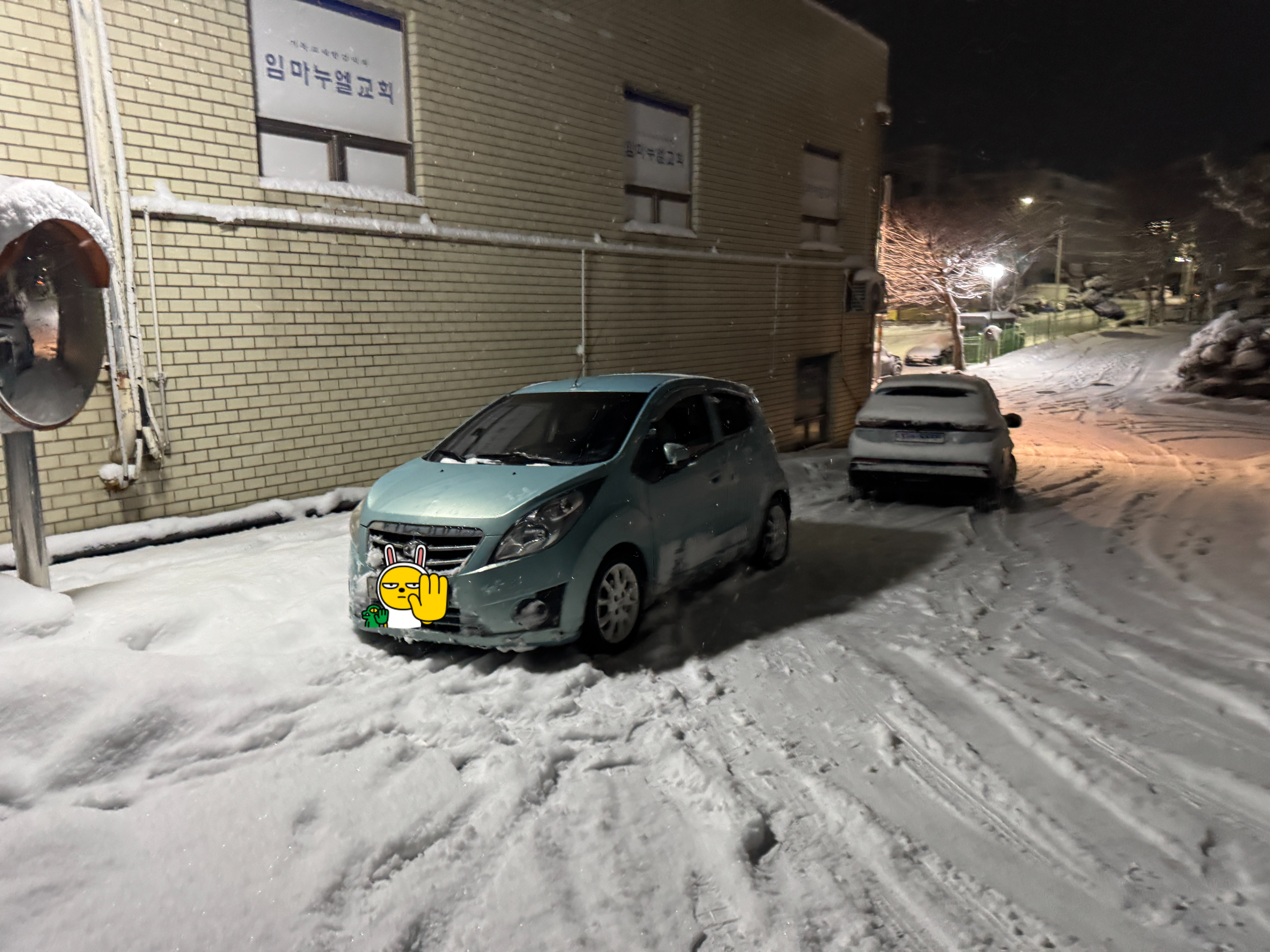KBS 2TV에서 방영해 줬던 설 특선 영화 탈주를 보고 자러 가기 위해 나왔습니다만, 대우 마티즈 크리에이티브 한 대가 아파트 단지의 꺾어 올라가는 길에 차를 대충 세우고 치킨배달을 가더군요. 차를 좀 빼주던지 옮겨달라고 하니 지나갈 수 있지 않냐고 합니다. 그러곤 지켜보는데 당연히 평소에도 넘어가는 차가 중앙선을 무조건 넘어서 갈 수 없는 도로인데 미끄러우니 차가 미끄러지지요.