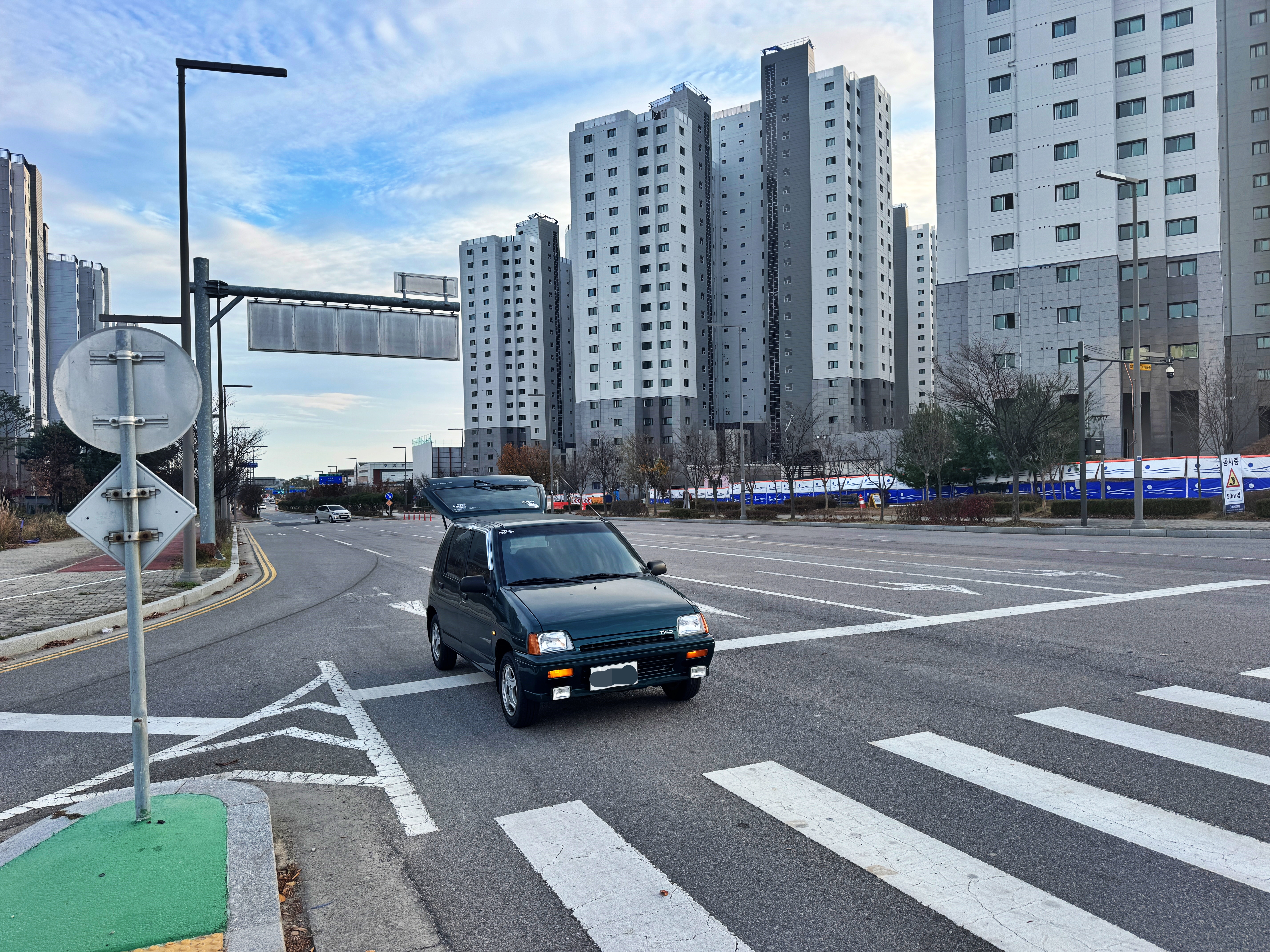 티코가 사거리 한복판에 퍼져서 섰습니다.