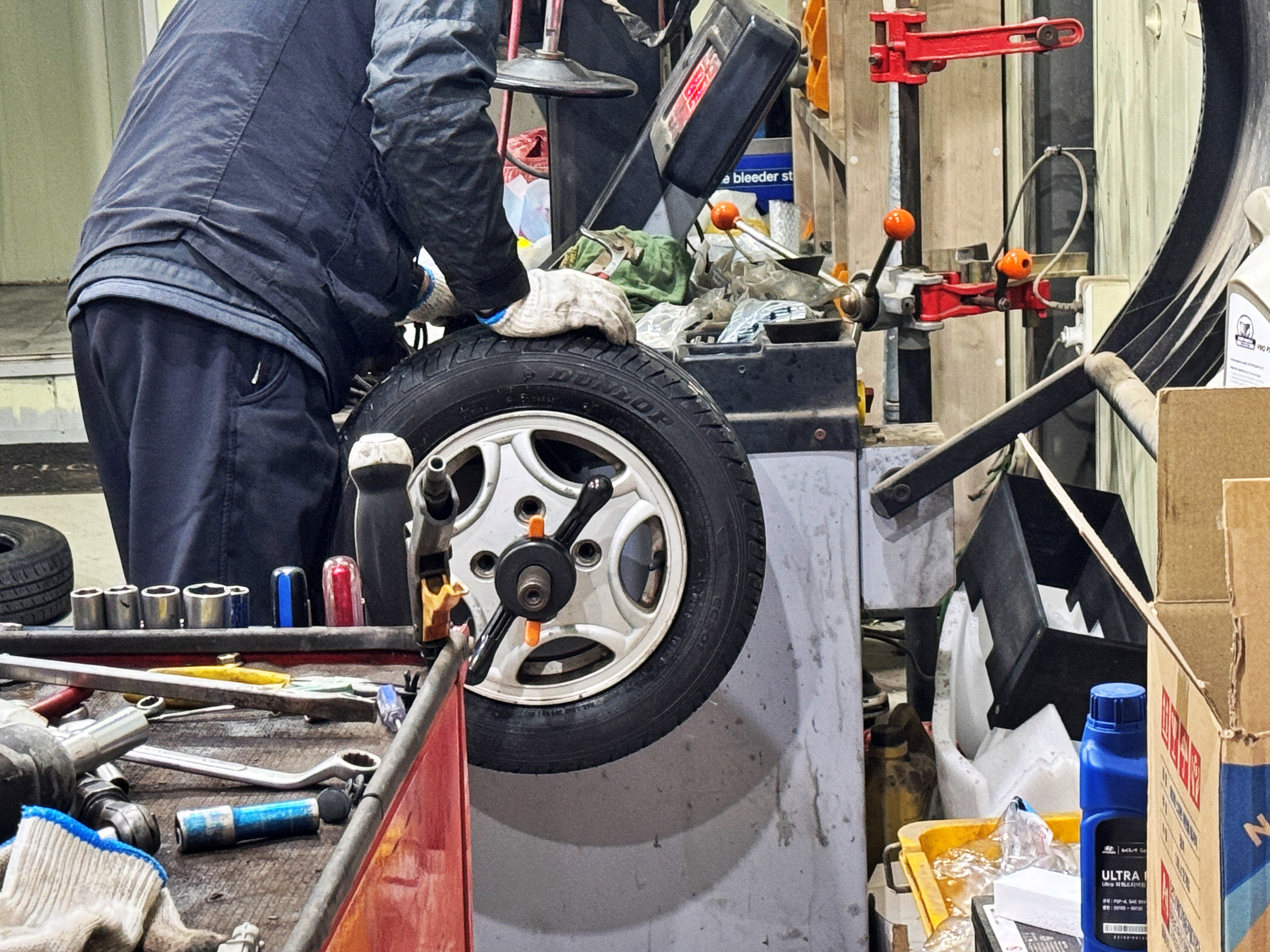7년간 그리 많이 타지는 않았지만, 고생 많았던 타이어입니다. 그렇게 기존 타이어와 작별을 고하고 일본에서 가져온 타이어를 끼운 뒤 밸런스를 맞춰줍니다.